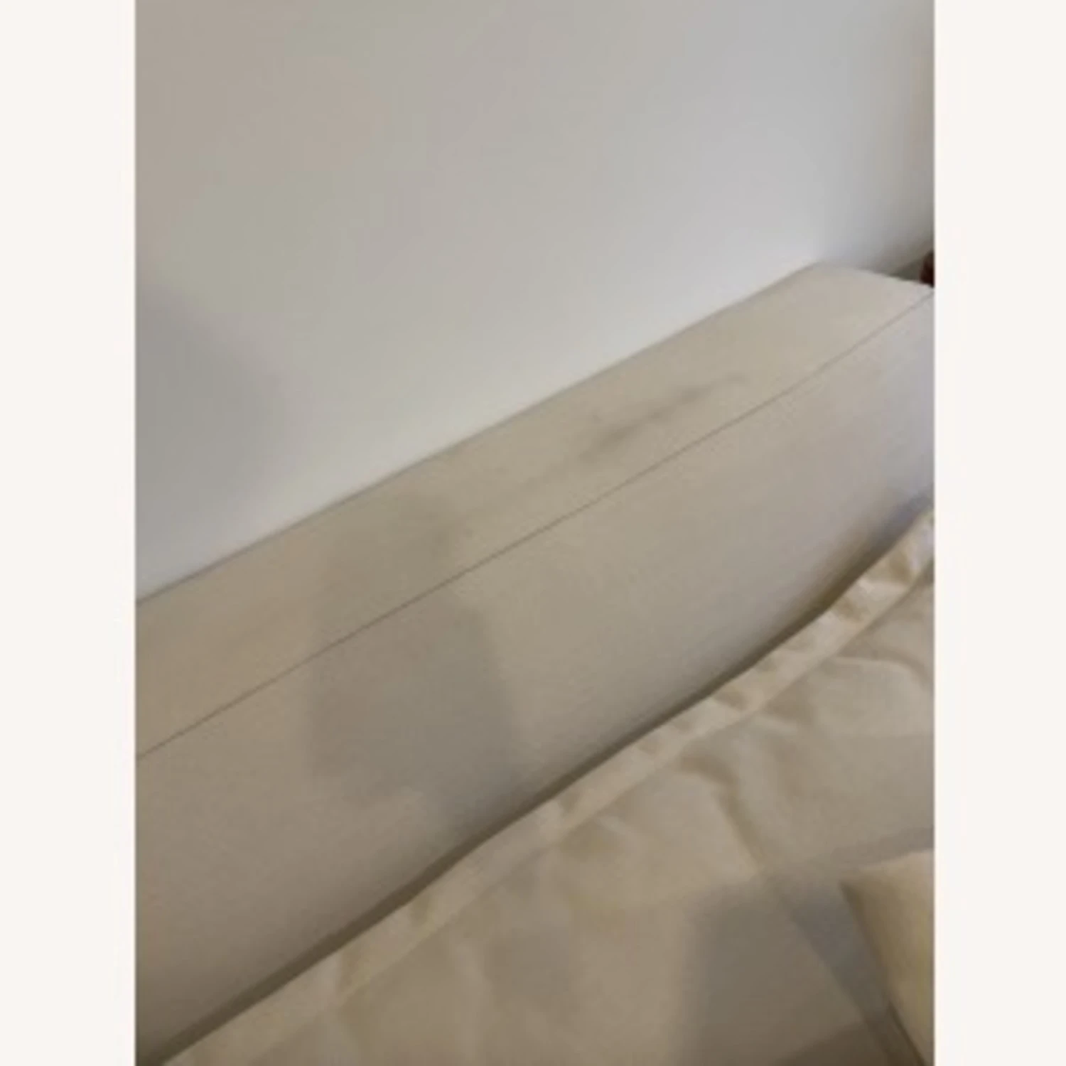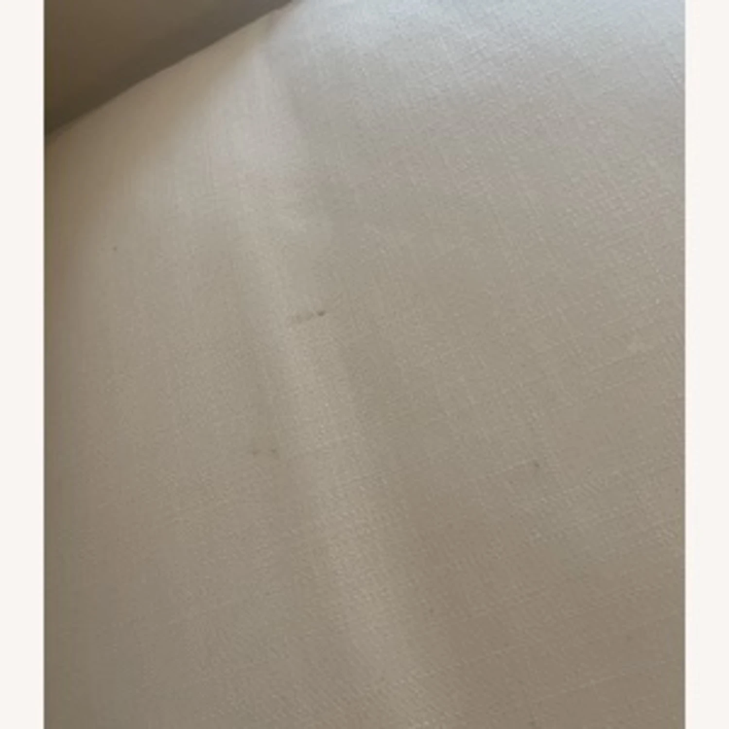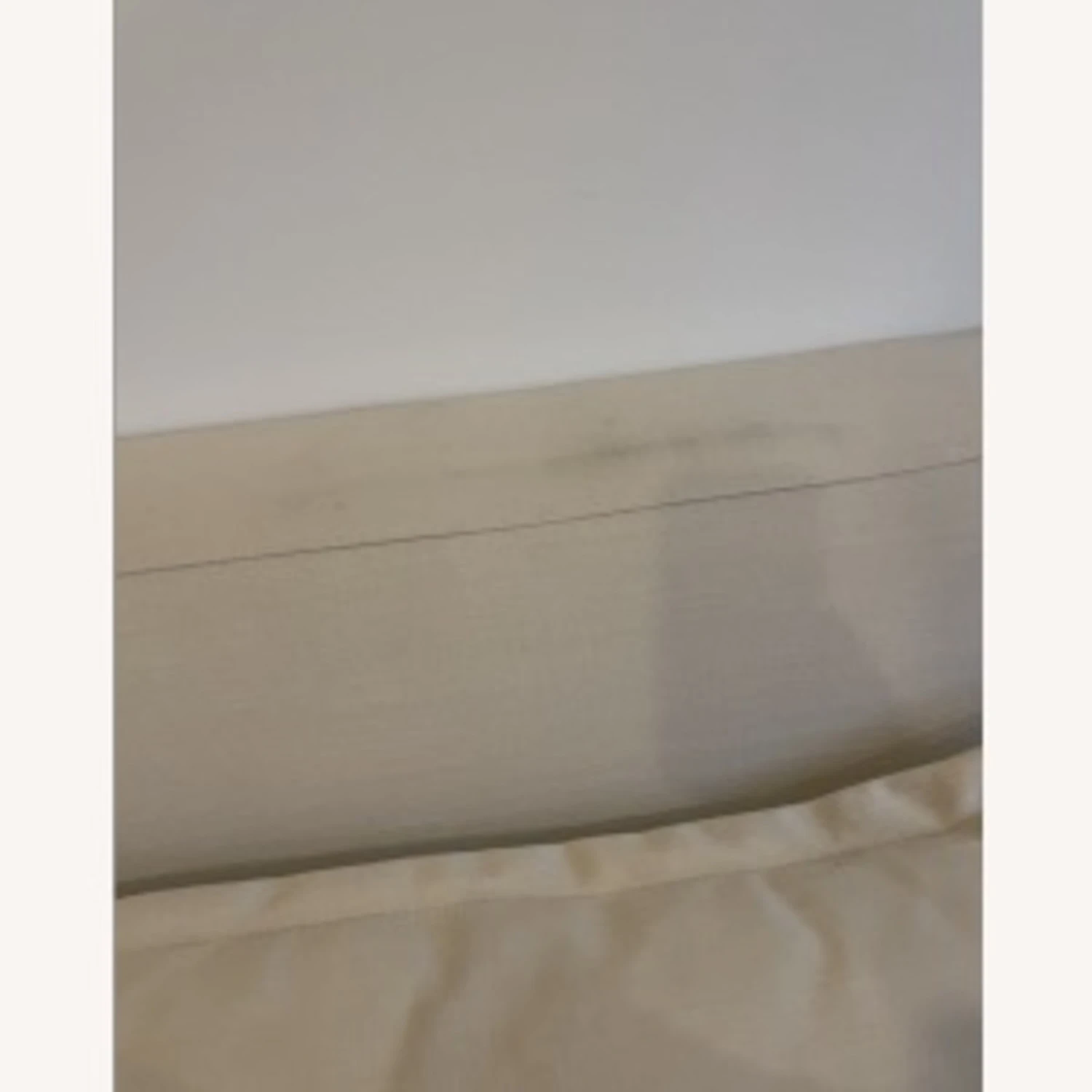 Seller’s Notes: Beautiful and functional sleeper chair. Selling because it didn’t quite fit the space it was purchased for. It’s in satisfactory conditions with two stains that’s on the top of the sofa that are noticeable in the photos and minor scratches. Includes pull out mattress and two throw pillows. One seat and one back cushion. Cushions are removable and reversible. Maple feet are removable as well.