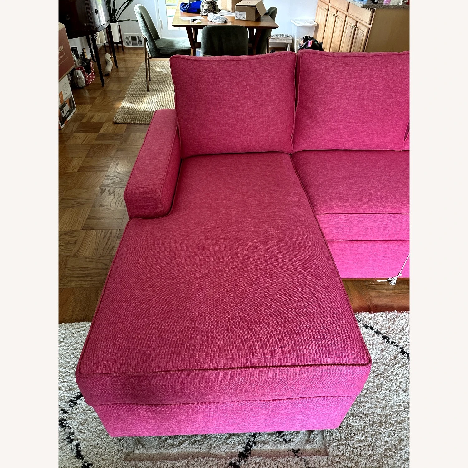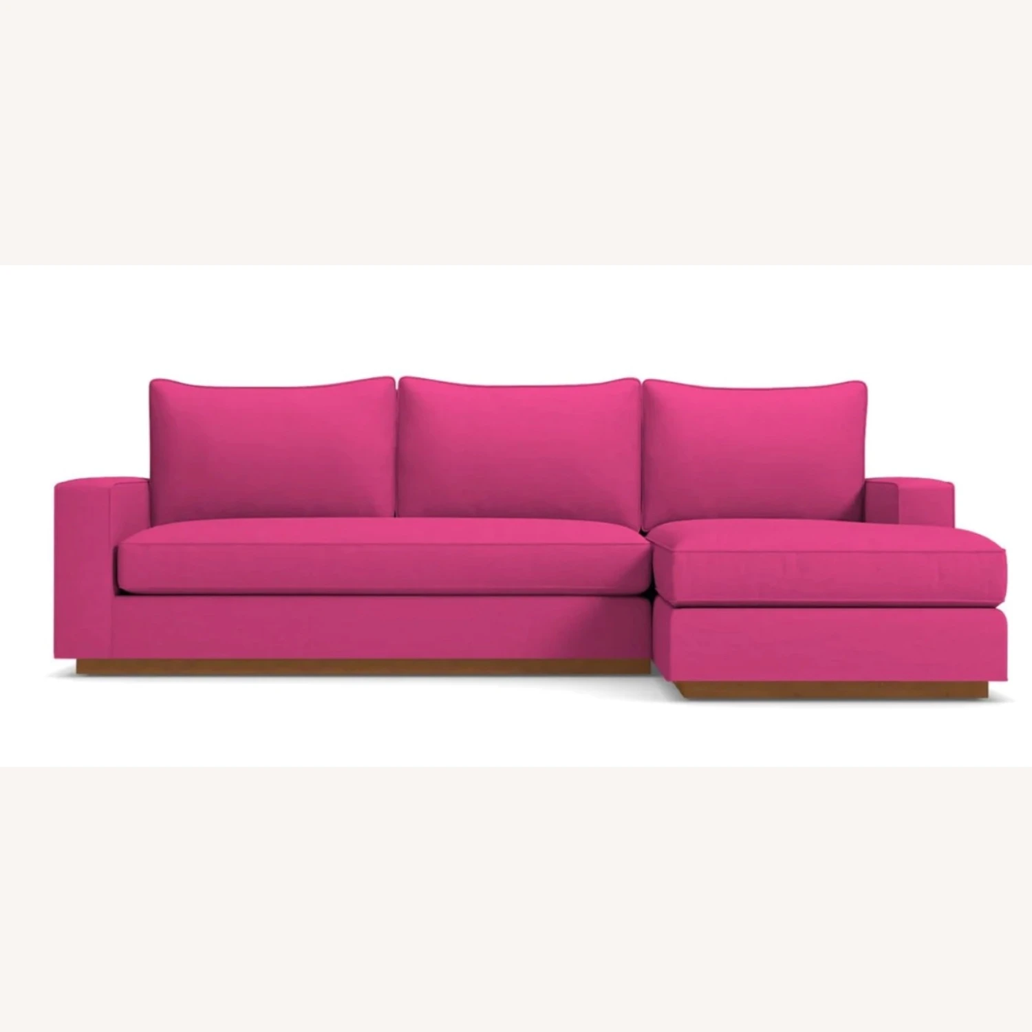 Seller’s Notes: BRAND NEW recently purchased Barbie Hot Pink/ Bubble Gum Pink Apt2B Harper Reversible Chaise Sleeper Sofa.