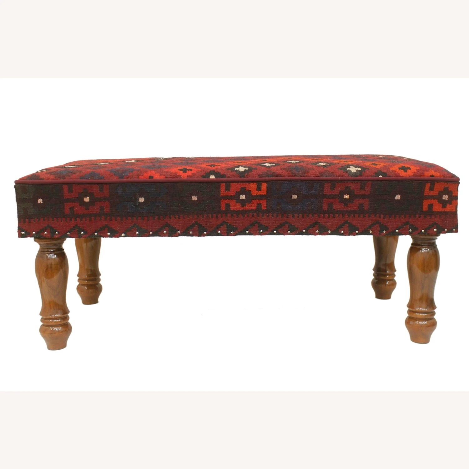 Seller’s Notes: Stylish sophisticated and out-of-ordinary handmade Settee crafted by skilled artisans using vegetable-dyed hand-woven Tribal Kilim Upholstered Settee and wood is a multi-purpose fashion statement, which will add dimension, color, and style to your décor. Inspired by geometric motifs in any array of effervescent colors pallet grounds any space with elegance and sophistication.