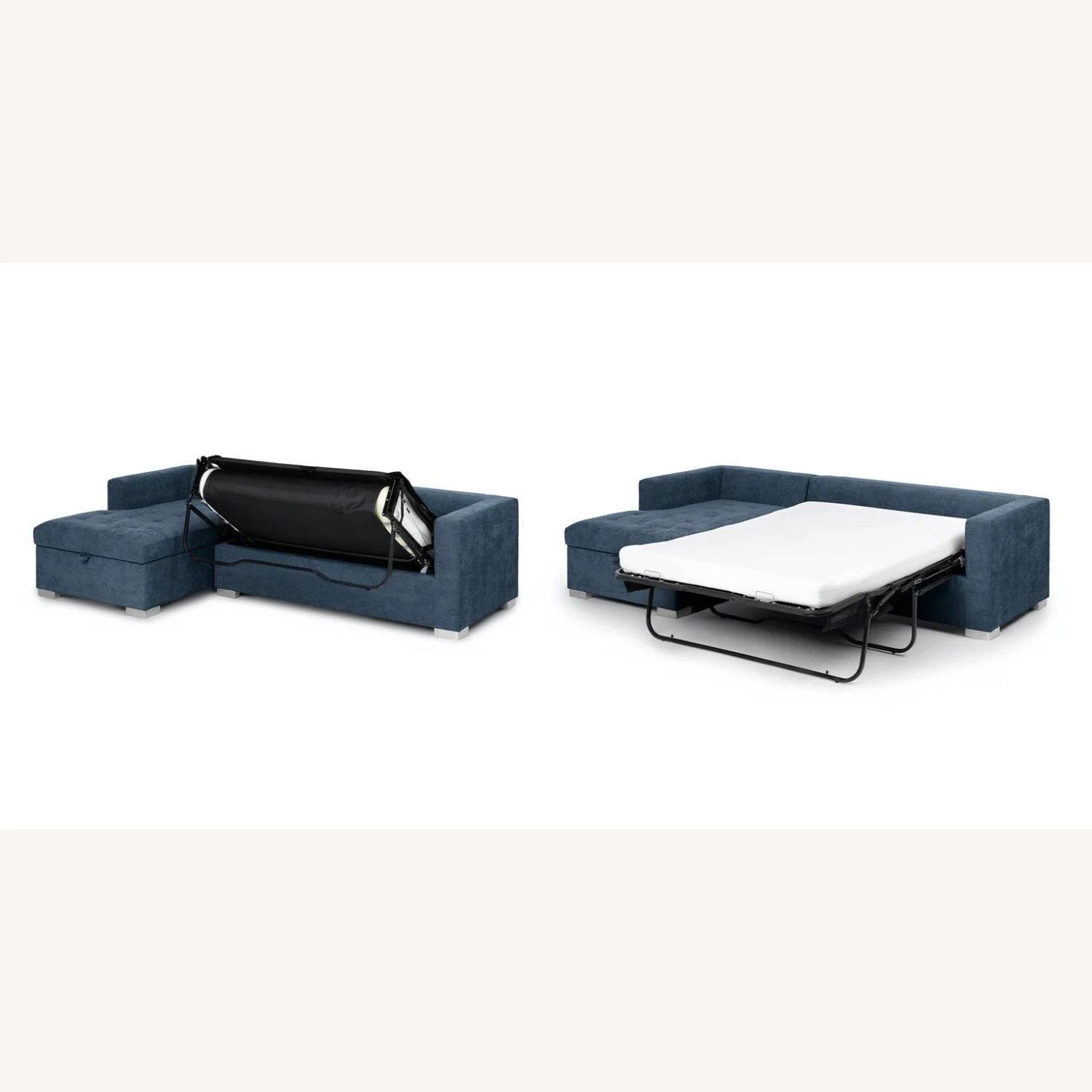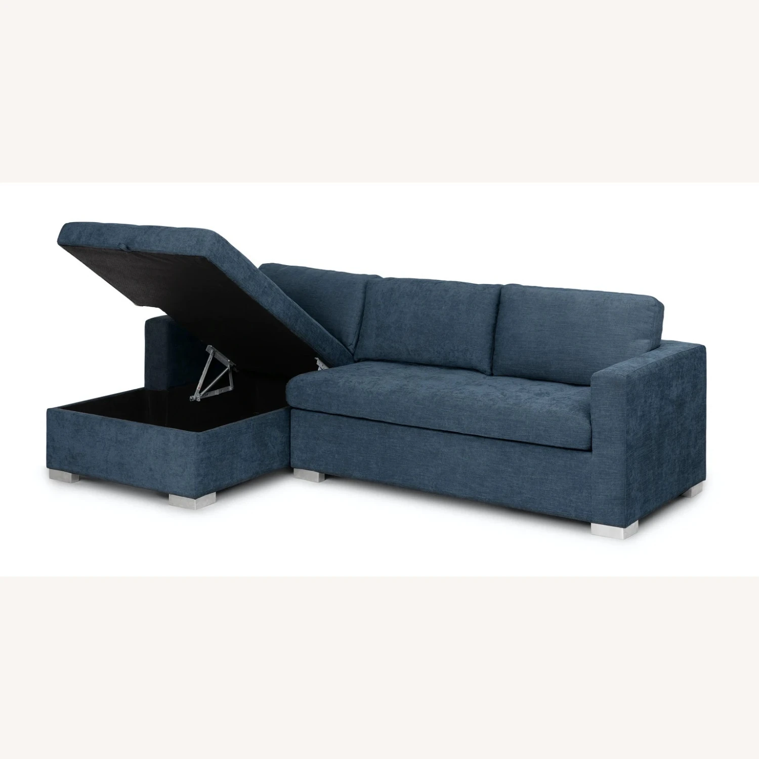 Seller’s Notes: Wonderfully maintained blue Article Soma sofa. The chaise has storage and is left-facing. We no longer need a sleeper sofa, so we are selling. Thanks for you looking!