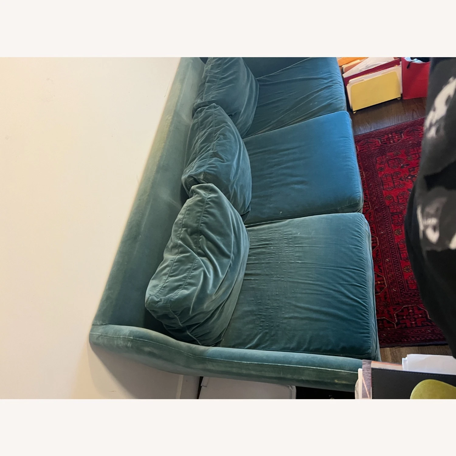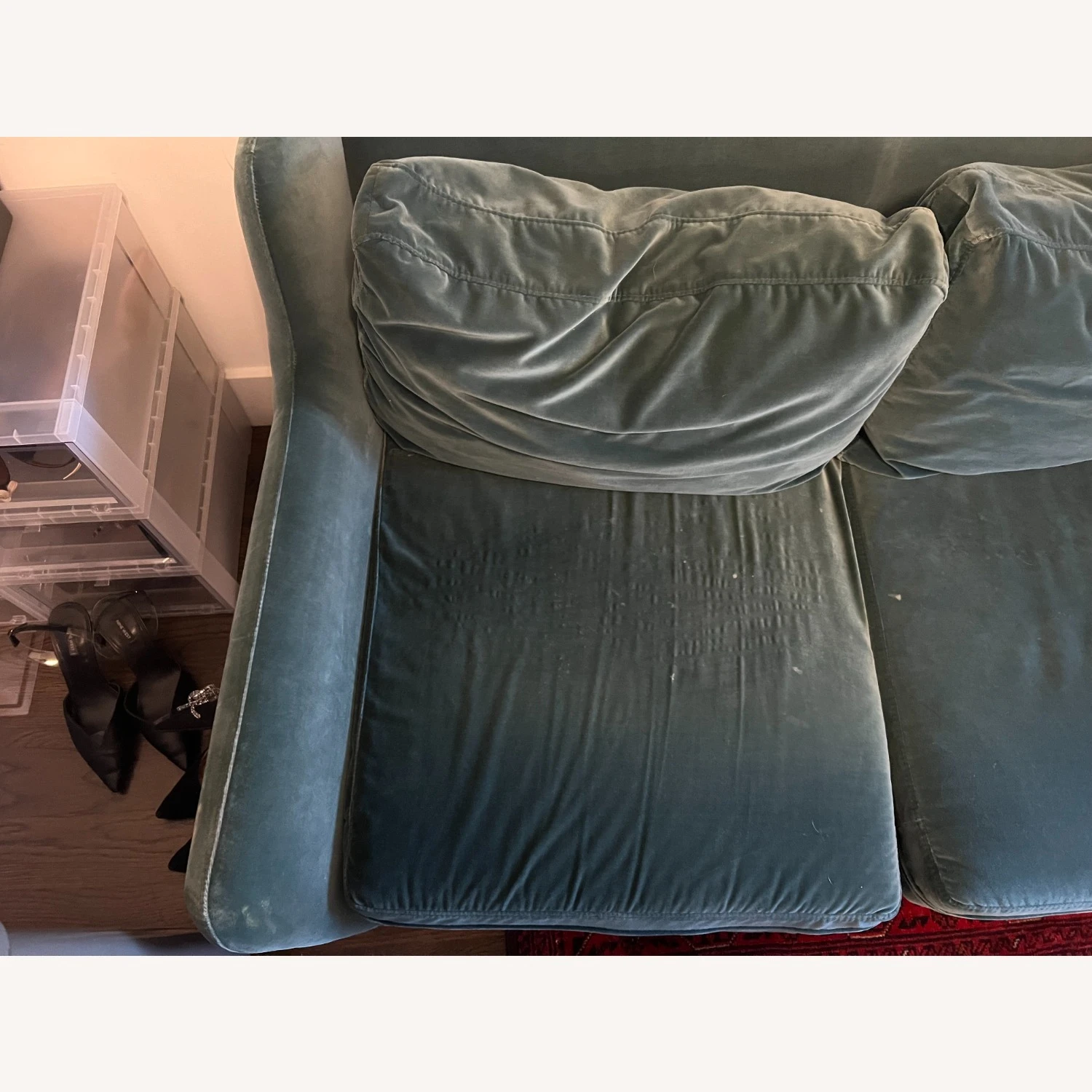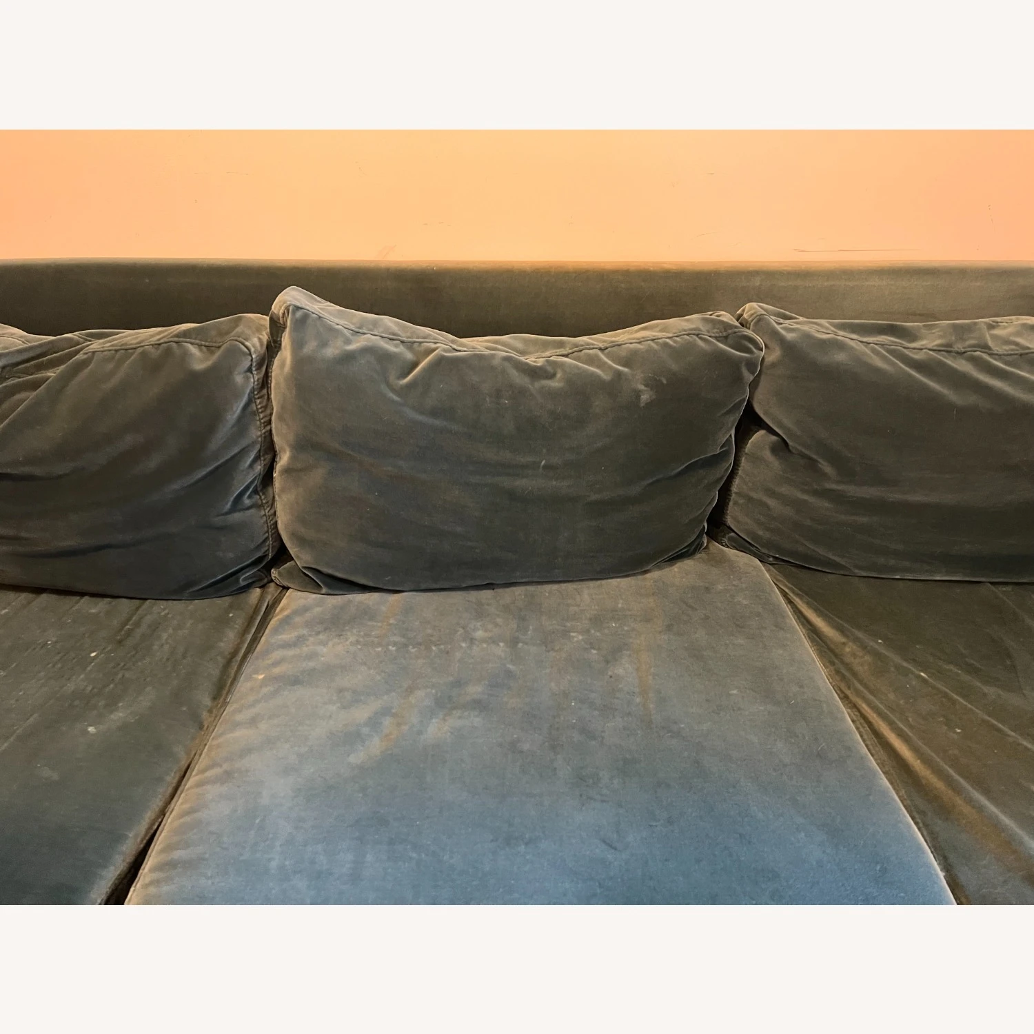 Seller’s Notes: This is a 4 year old velvet couch from Article that is in good condition, minus some wear on the velvet. The covers unzip and can be laundered.