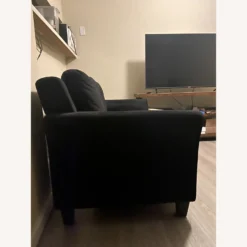 Seller’s Notes: Accompanying loveseat to go with the couch also listed. Willing to sell together or separately. Will come with two throw pillows. Used lovingly for lounging and watching movies.