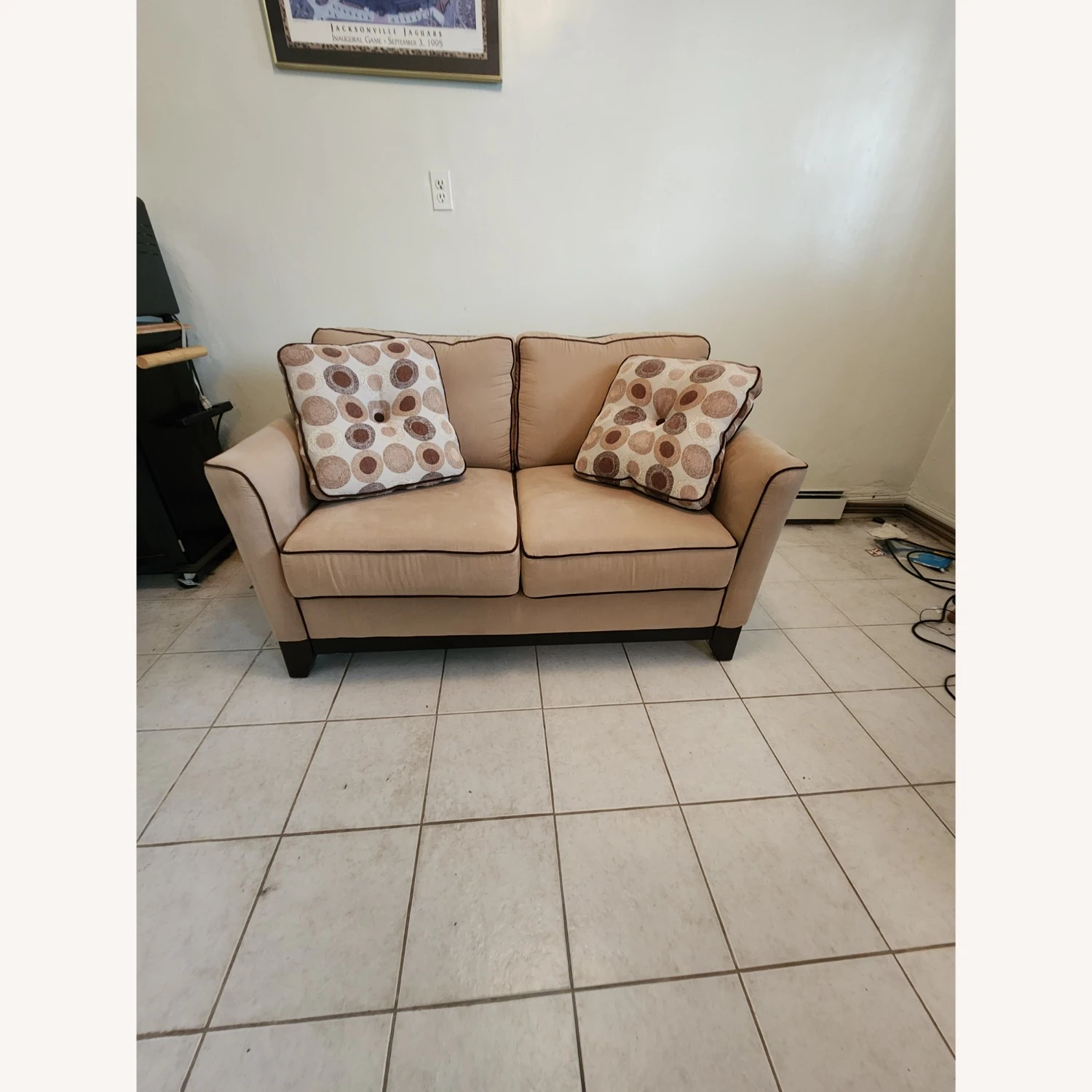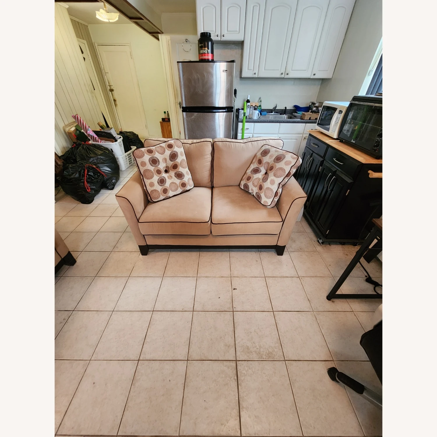 Seller’s Notes: After 5 years this love seat still looks like it’s never been used. Comfortable fabric and cushions still fluffy!