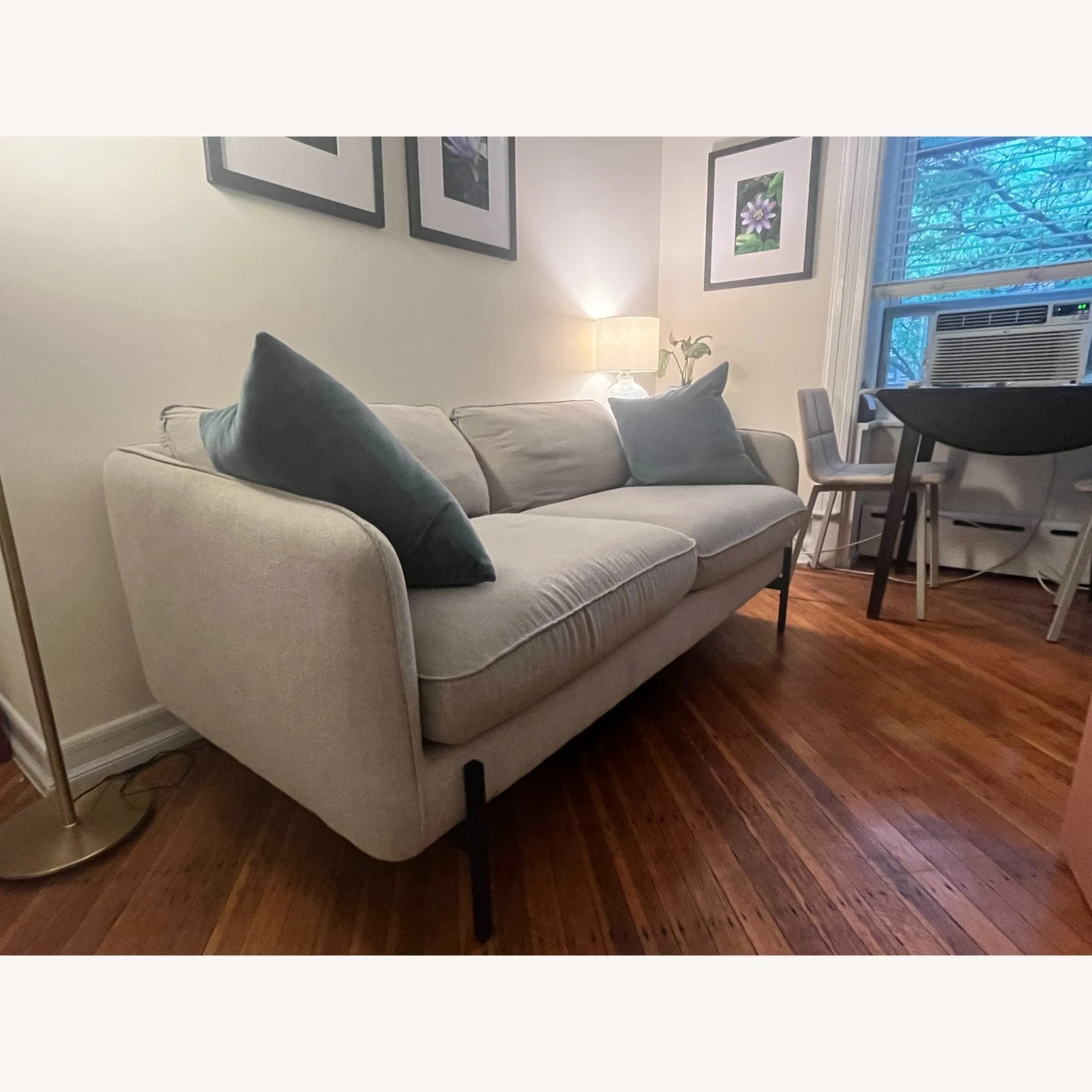 Seller’s Notes: This loveseat is two-years-old, and I’m selling it because I’m moving in with my partner and don’t have space for it in our new place. The couch is in the Hatch Platinum Weave fabric.