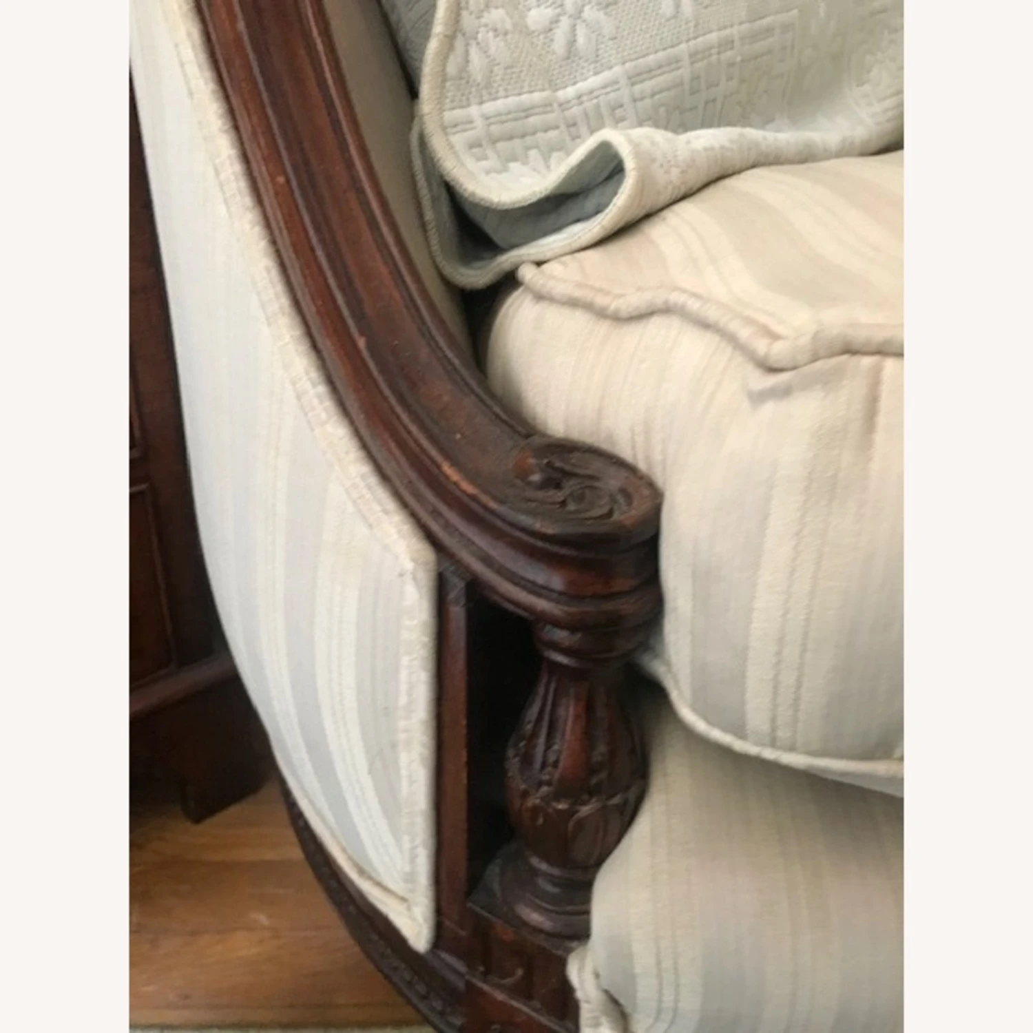 In good condition and comfortable. in the original fabric. purchased at an Antique Furniture store near Bloomingdales. the address of the store was on 226 East 59 street.