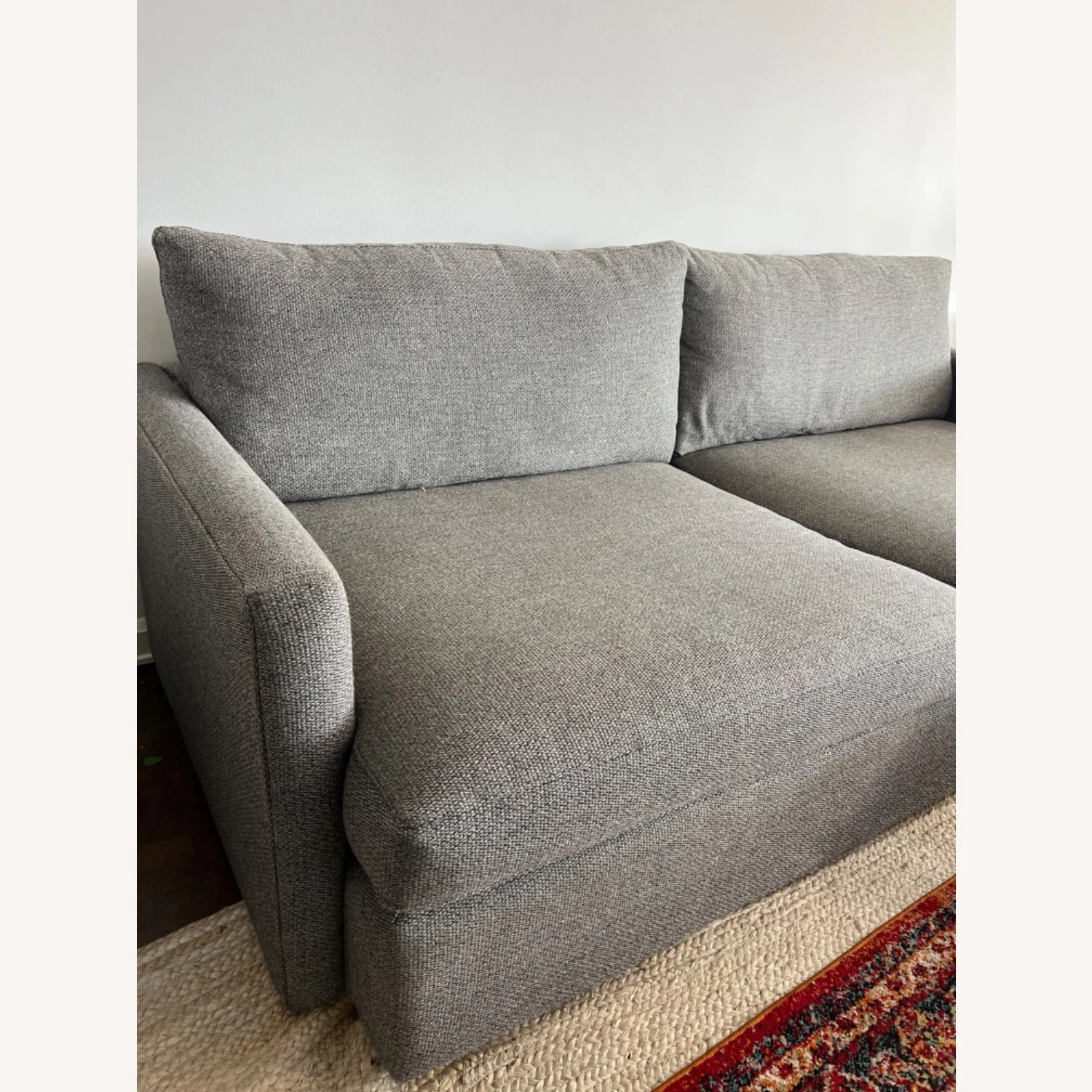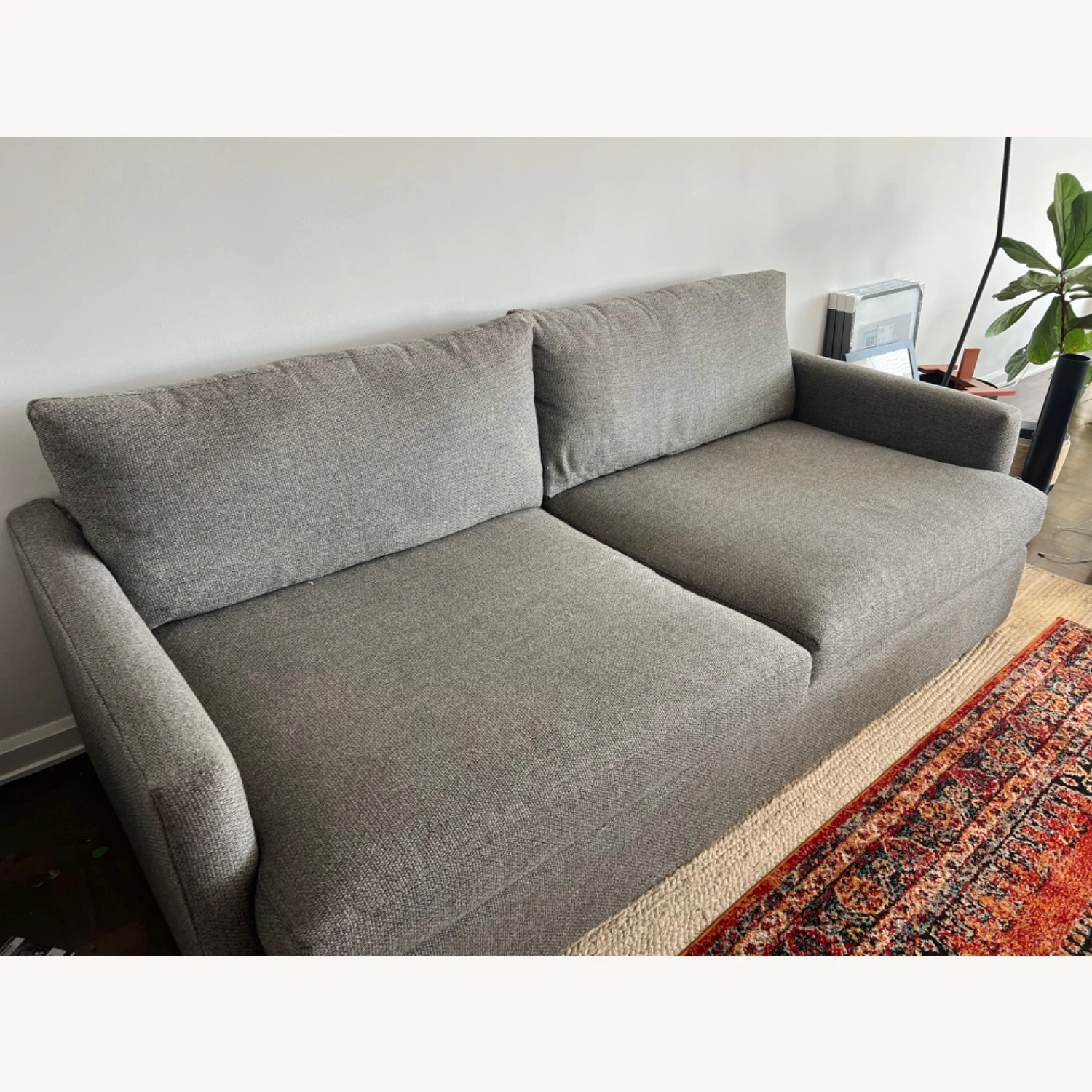 Seller’s Notes: Comfy sofa – great for binge movie days, houseguests, and entertaining. Fantastic condition. Hypoallergenic low shedding dog in the apartment but only allowed on a blanket for the sofa. Upgrading to a larger size and need to get rid of this one – as much as we love it.