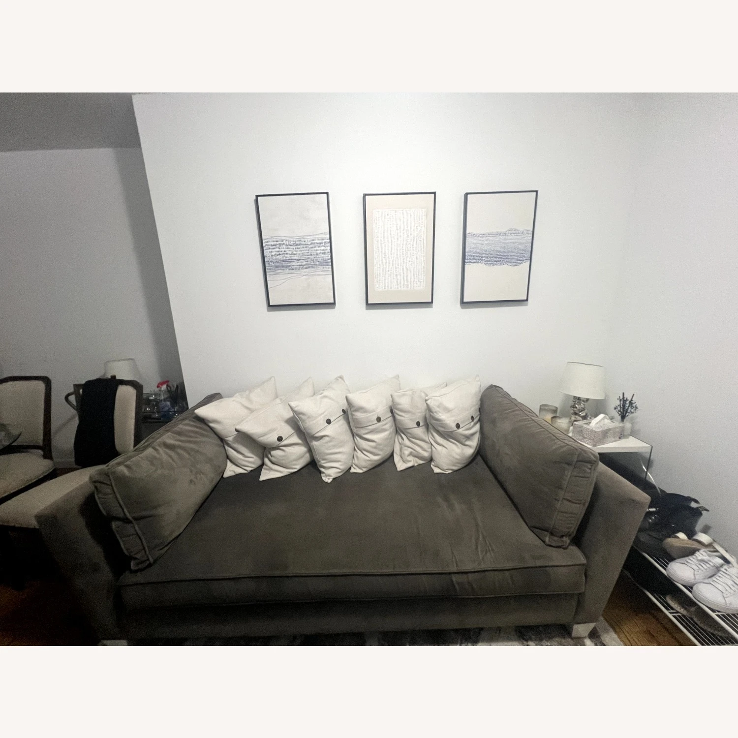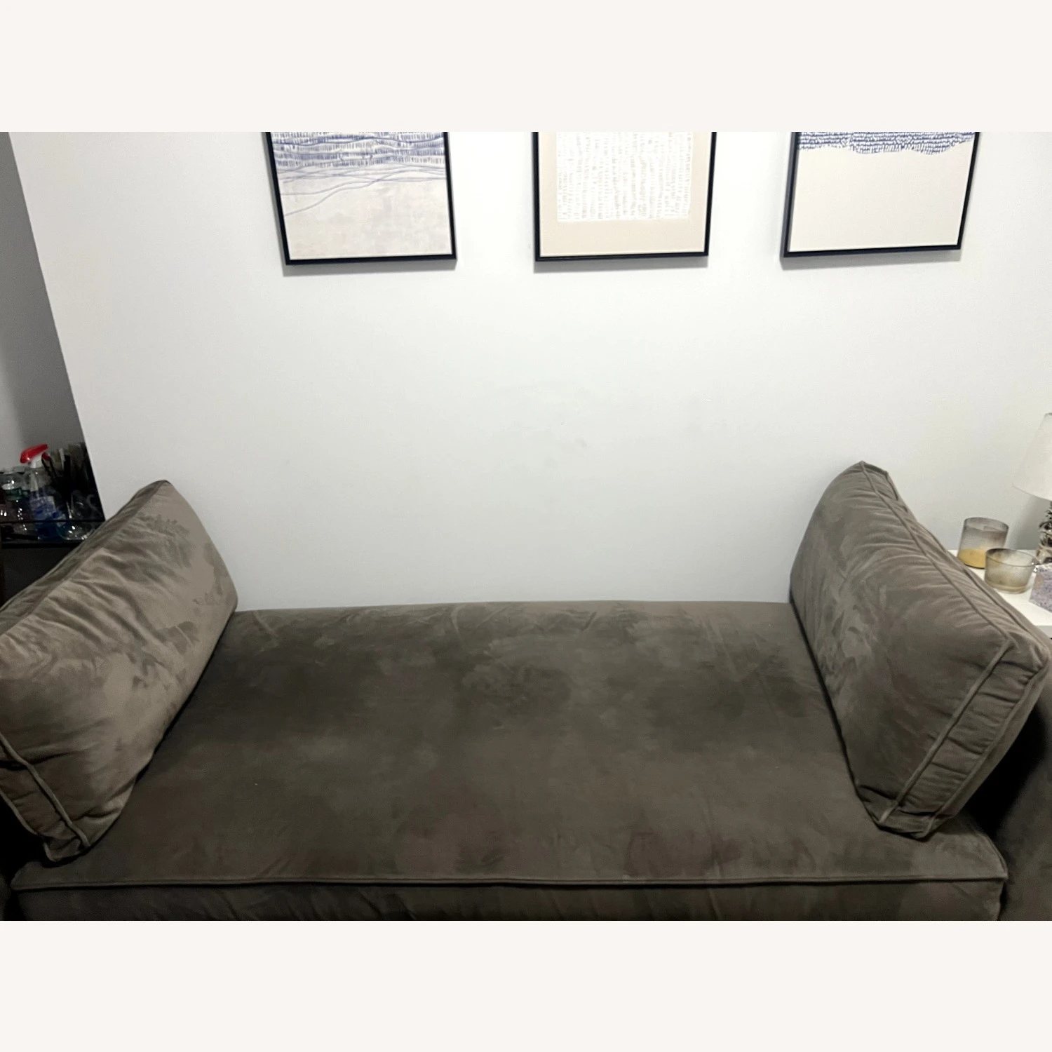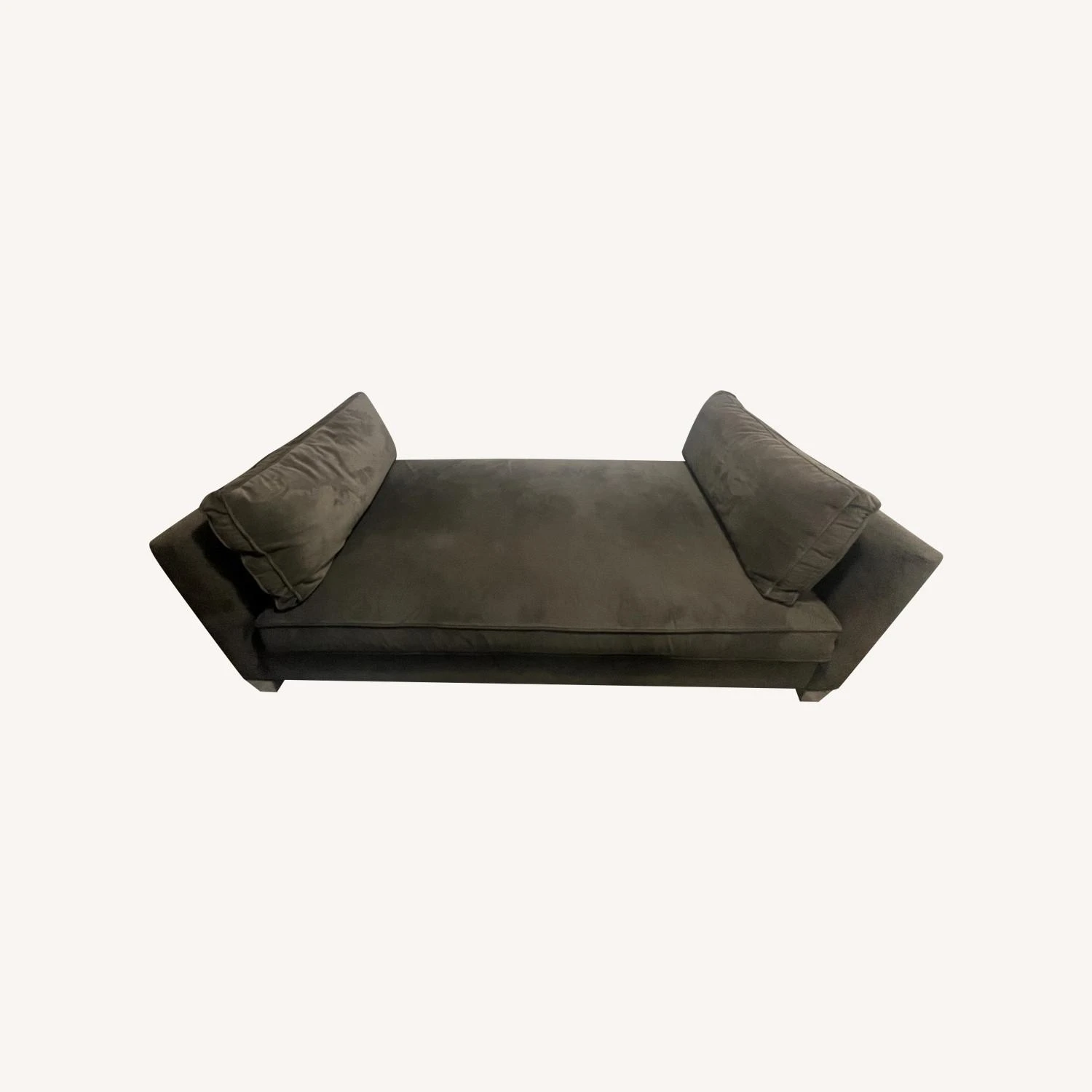 Seller’s Notes: The ultimate landing zone for reading, napping and the spontaneous overnight guest, the Marlowe daybed’s sleek, open bench styling can float as a room divider in the living room or move up against a wall in the family room, with its pillows arranged to create a “sofa back.” ^ Upholstered in a velvet-soft chenille, its graceful, flared arms and sink-in bolster pillowsand a comfortable bench seat equivalent in size to a twin mattress.