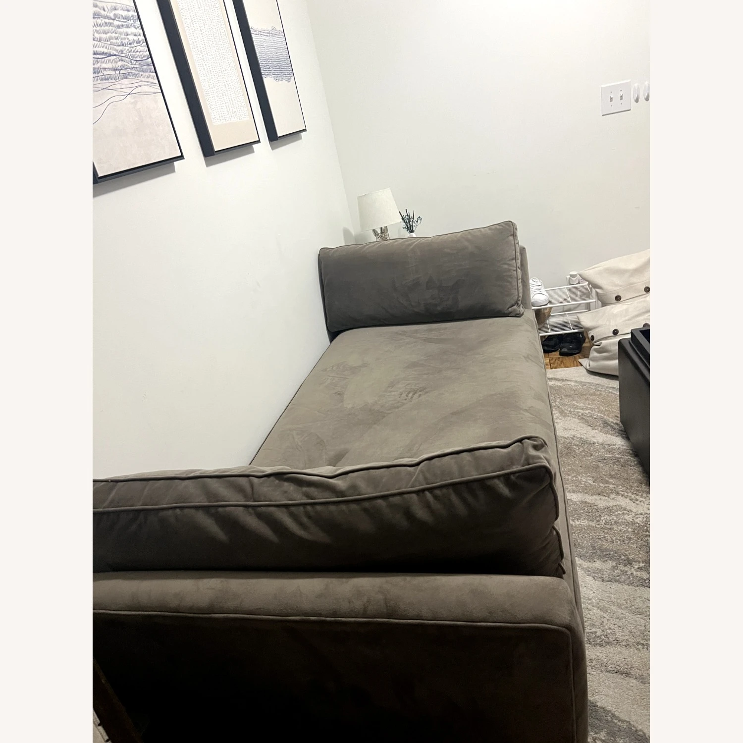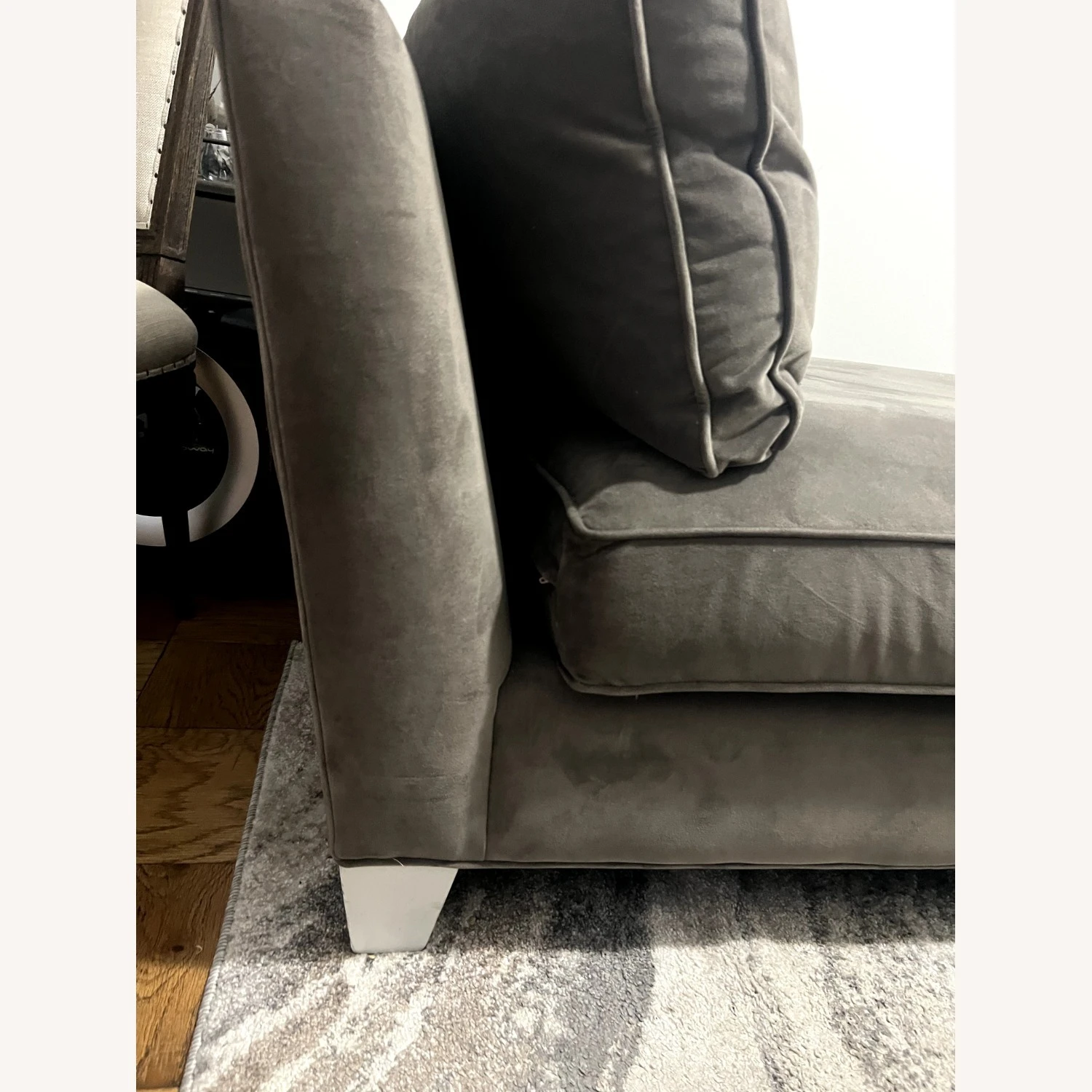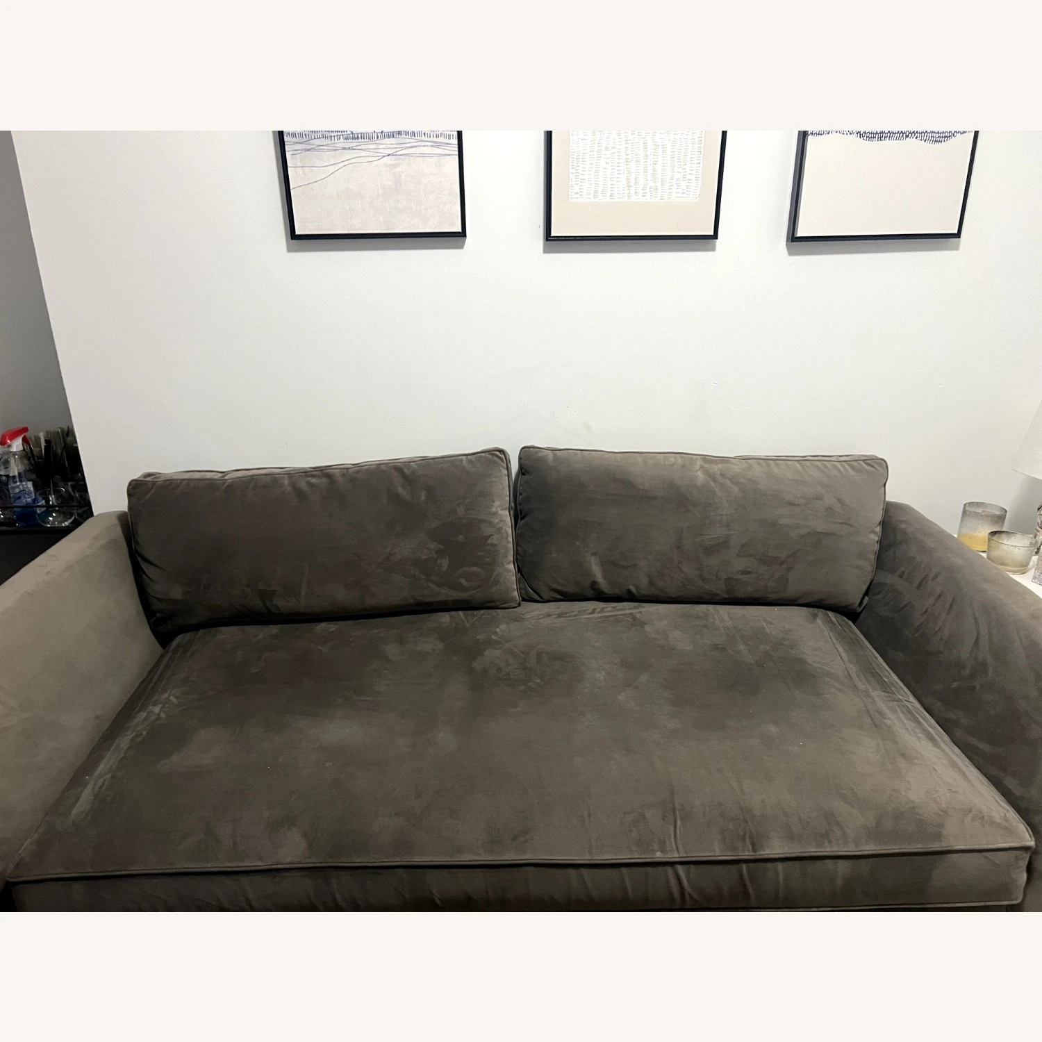 Seller’s Notes: The ultimate landing zone for reading, napping and the spontaneous overnight guest, the Marlowe daybed’s sleek, open bench styling can float as a room divider in the living room or move up against a wall in the family room, with its pillows arranged to create a “sofa back.” ^ Upholstered in a velvet-soft chenille, its graceful, flared arms and sink-in bolster pillowsand a comfortable bench seat equivalent in size to a twin mattress.