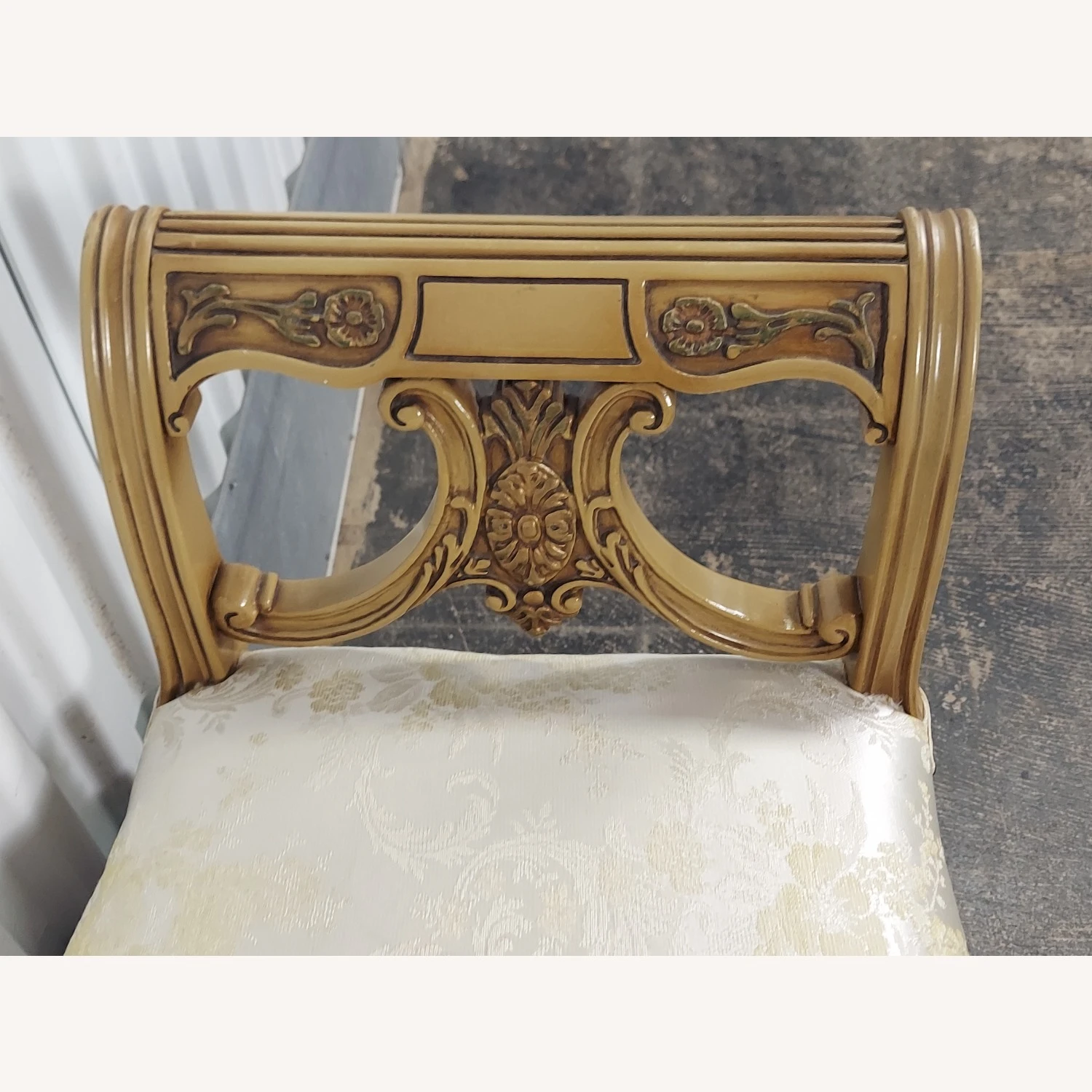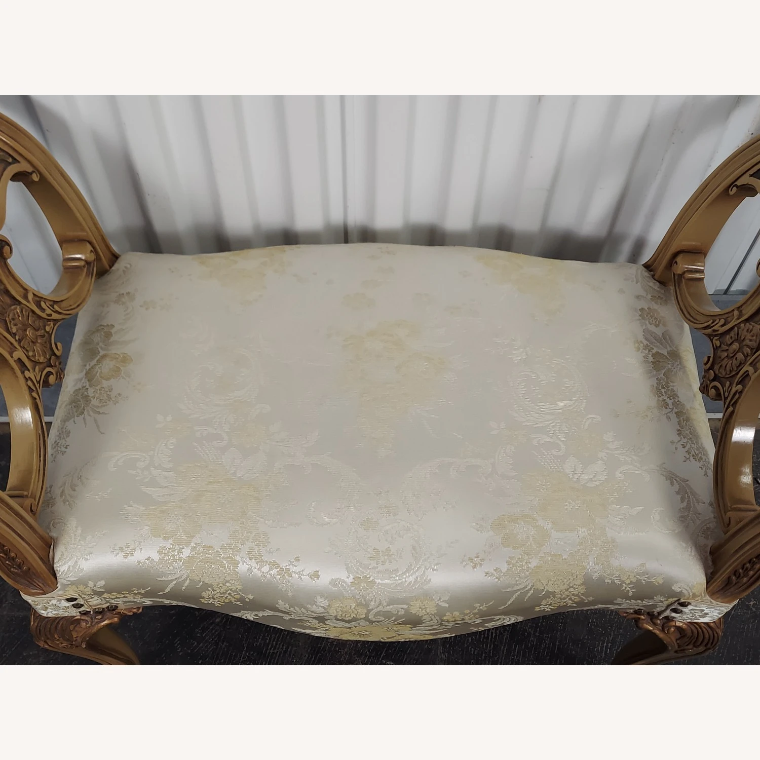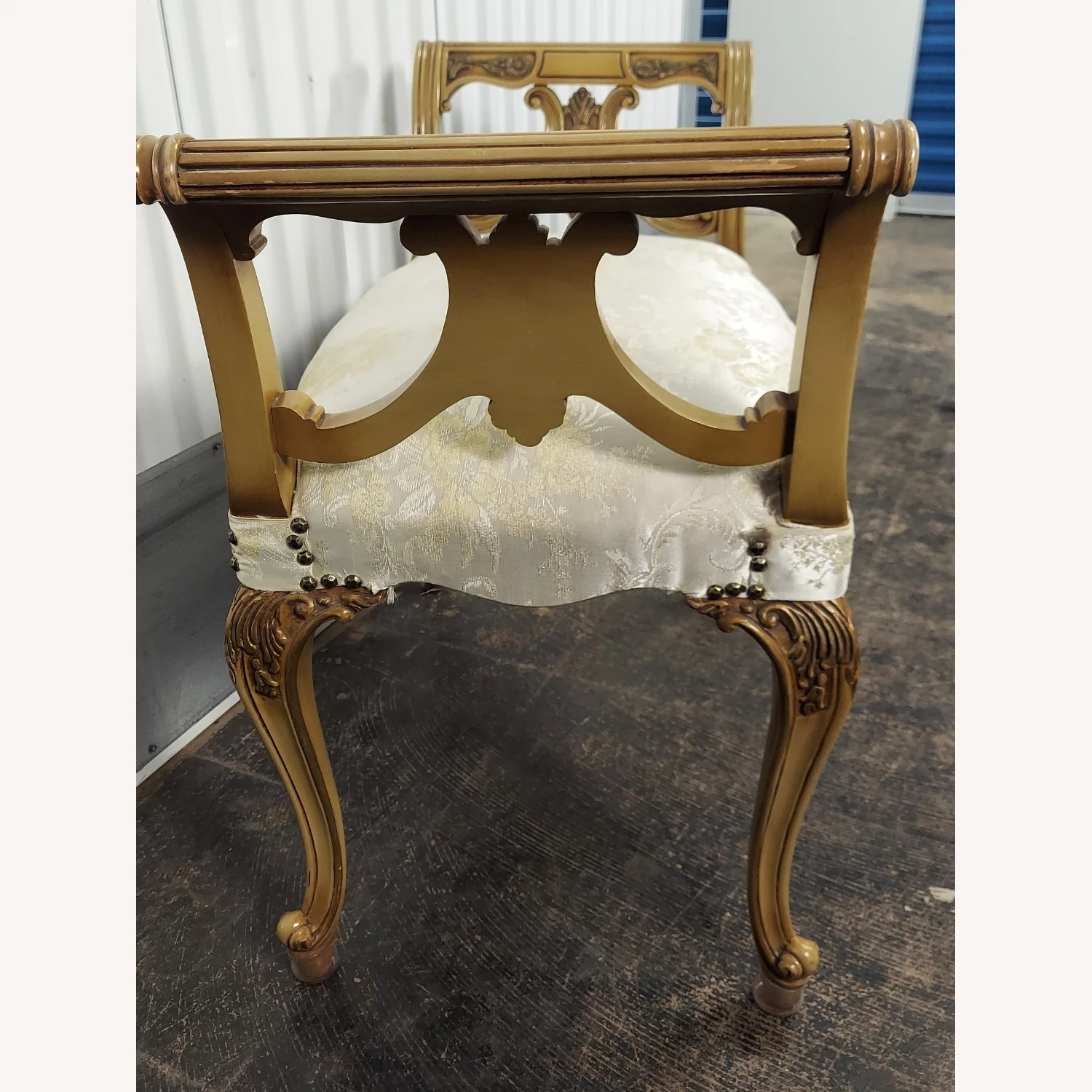 Seller’s Notes: This bench is in excellent condition. It is newly upholstered and has carved sides and legs. This bench is beautiful.