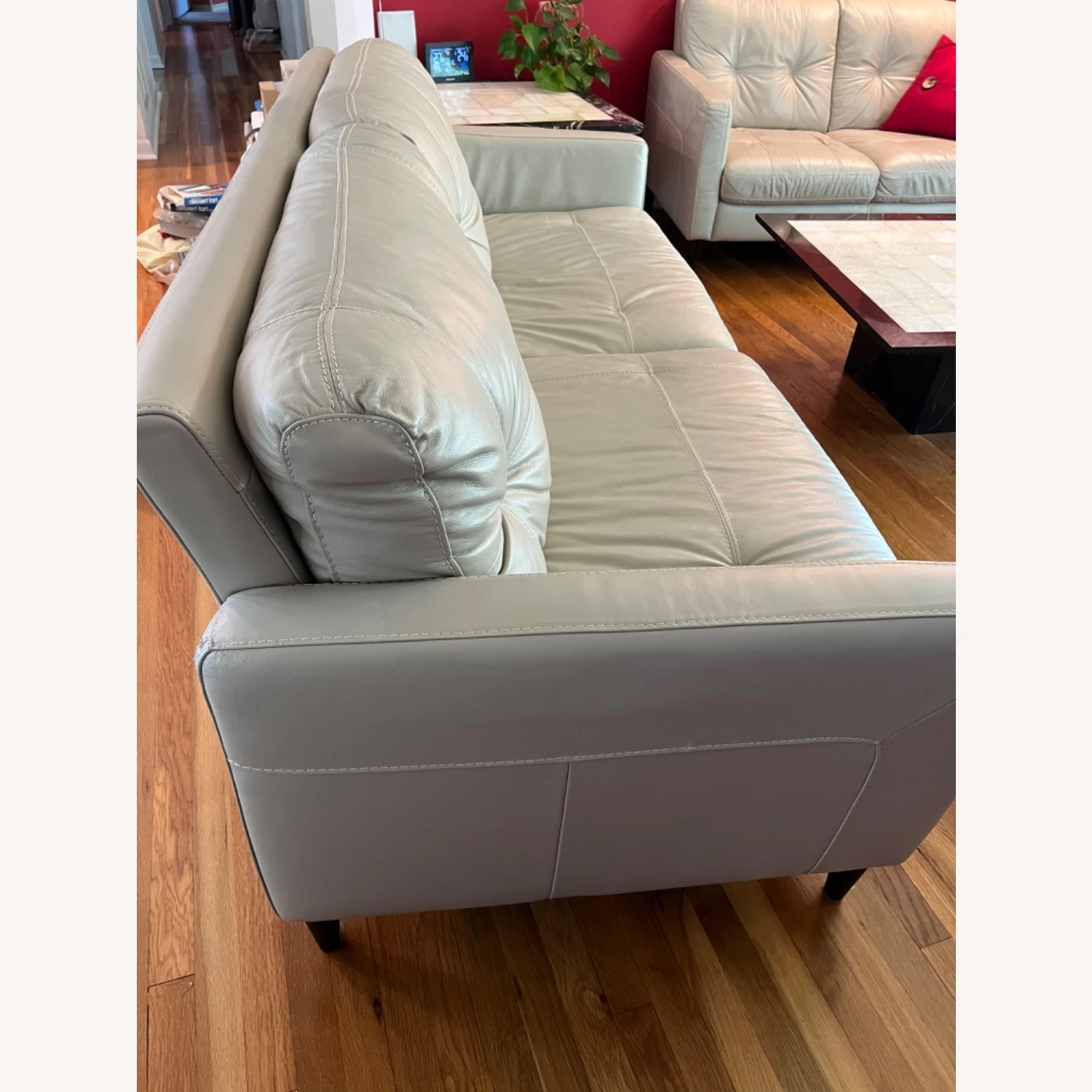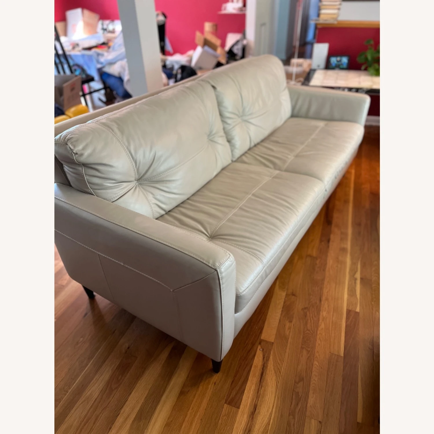Seller’s Notes: This sofa is in excellent condition. Itβs very comfortable, with a solid wood frame and high quality leather. Slightly scratched by a cat in the back on the side, not visible from front. Otherwise, there are no other blemishes.
