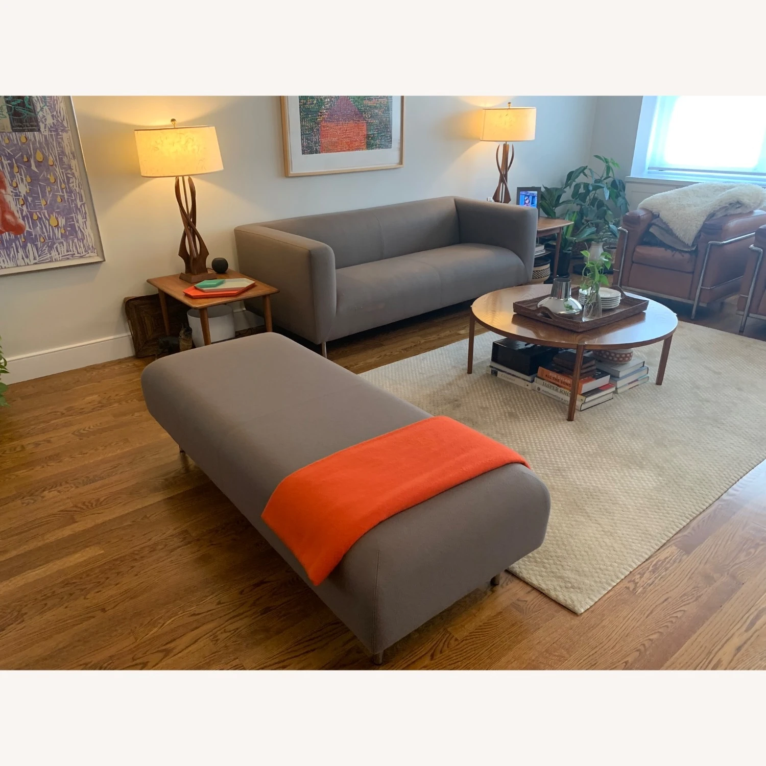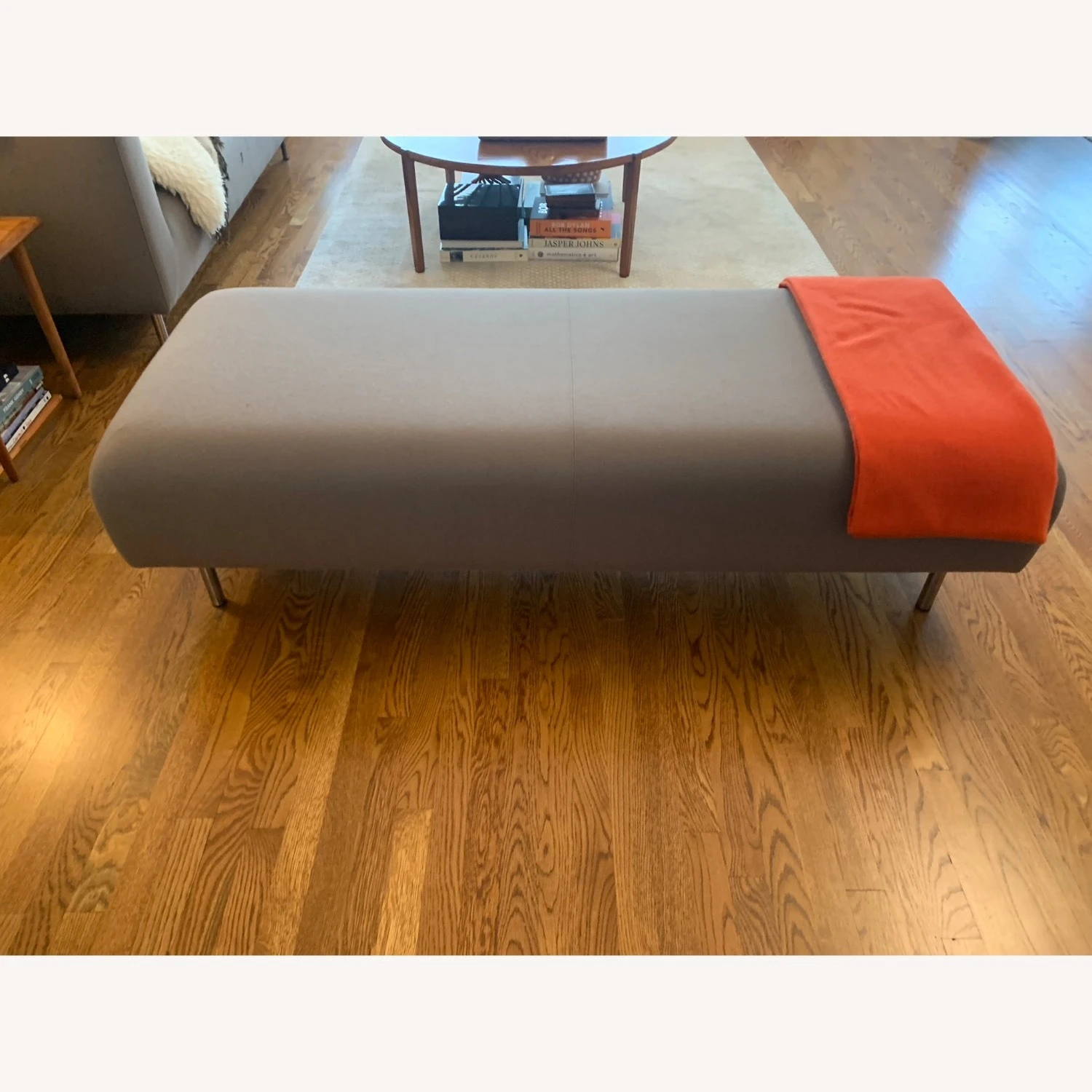 Seller’s Notes: We bought this bench along with a matching sofa. Both are for sale, This bench is in excellent condition.The fabric is a Maharam wool.