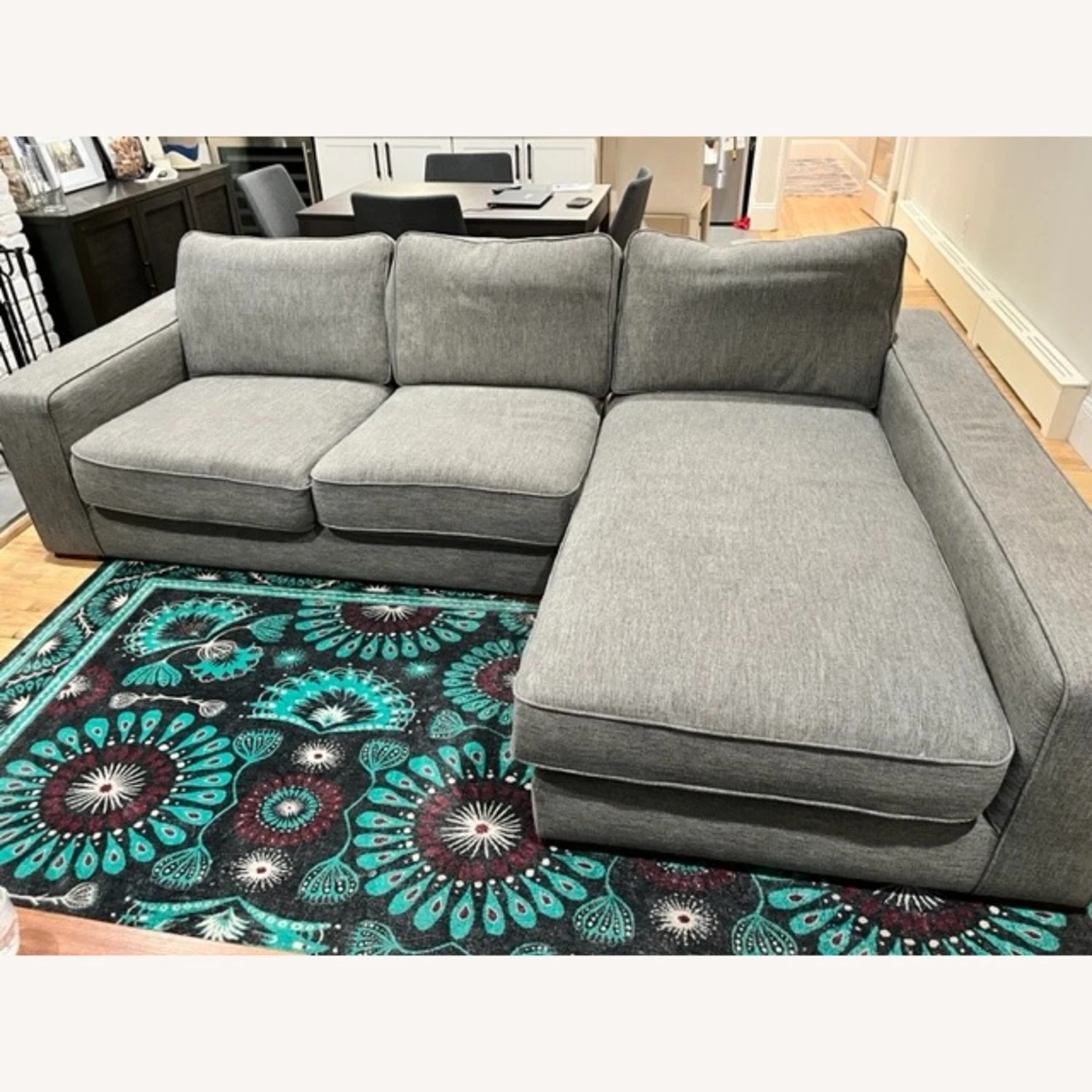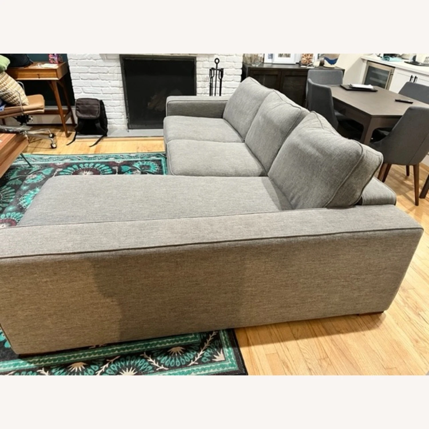 Seller’s Notes: Amazing 5 year old Interior Define grey section couch. Cushions are filled with down. This couch is great and extremely comfortable. It is too big for our current apartment which is why we are selling it. Great for people and pets, the chaise can also be used to sleep on if you need a place for a guest to sleep. Still in great condition. The chaise portion is 73 inches deep and the couch portion is 33 inches deep.