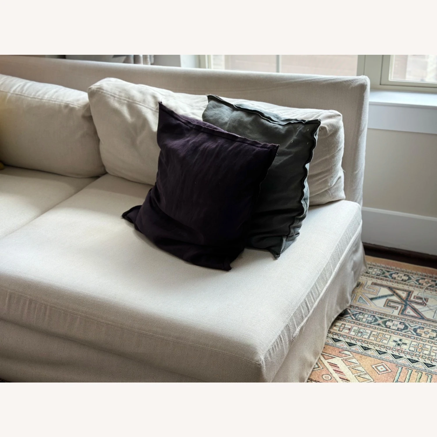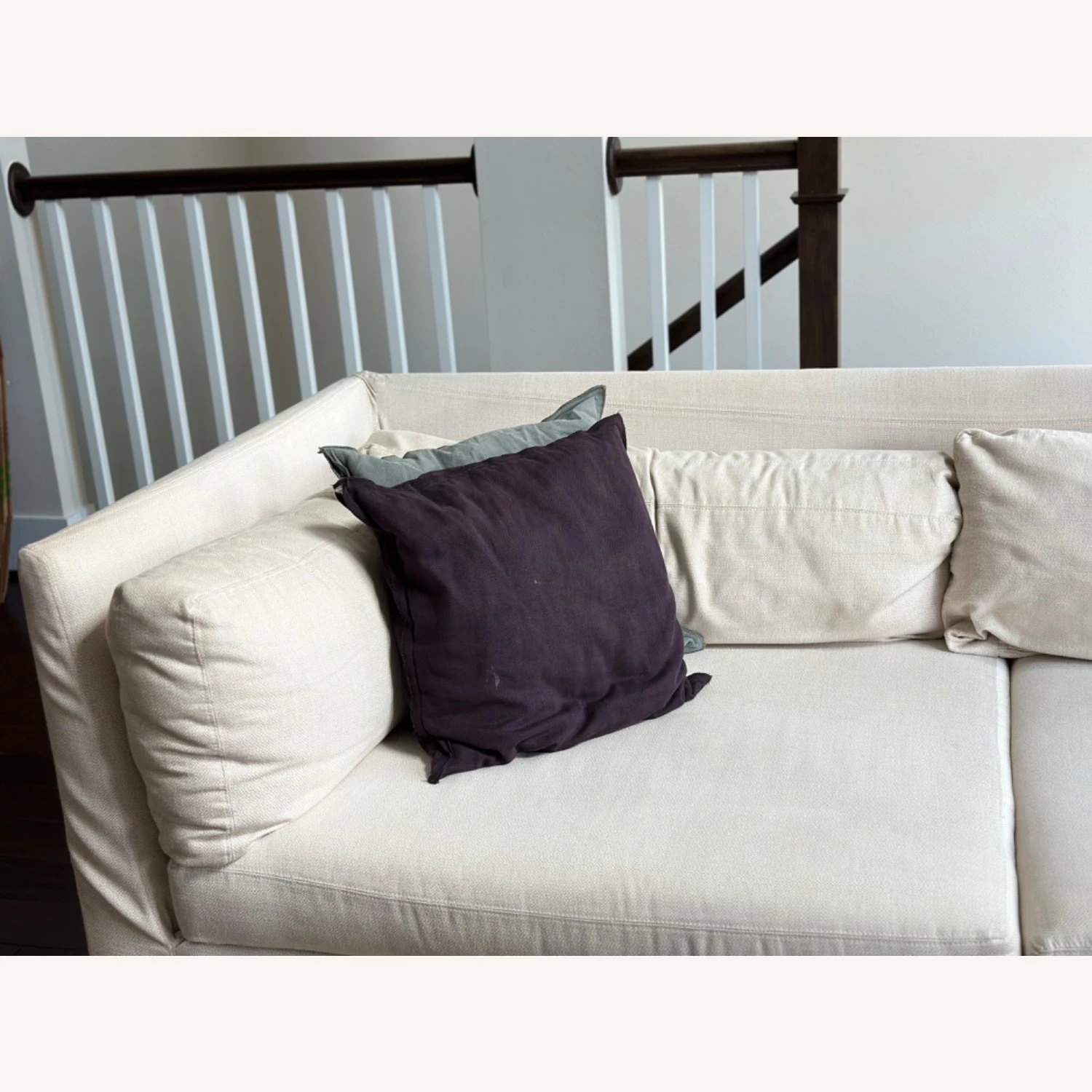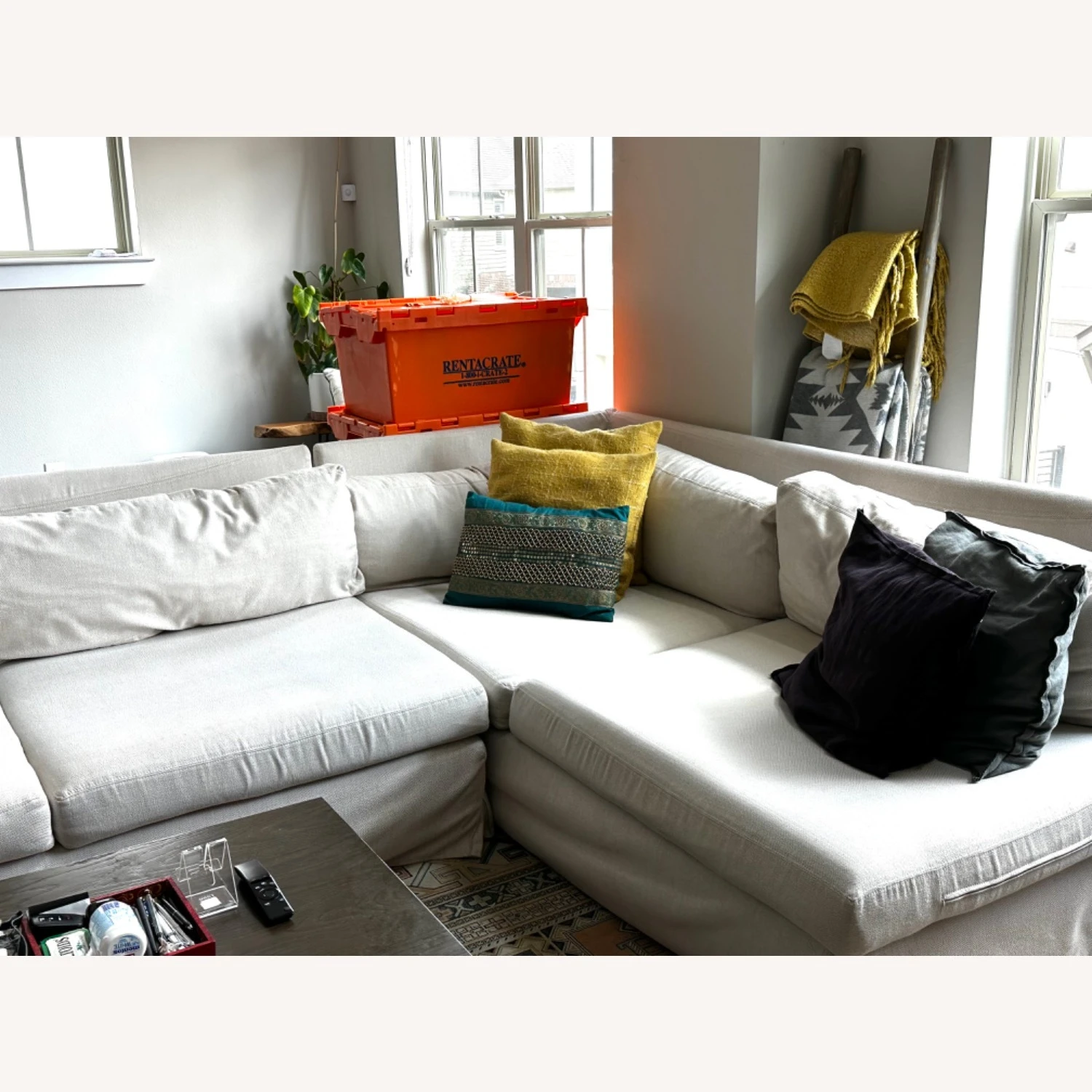 Seller’s Notes: Excellent right hand sectional with straight frame and pet and stain friendly fabric.