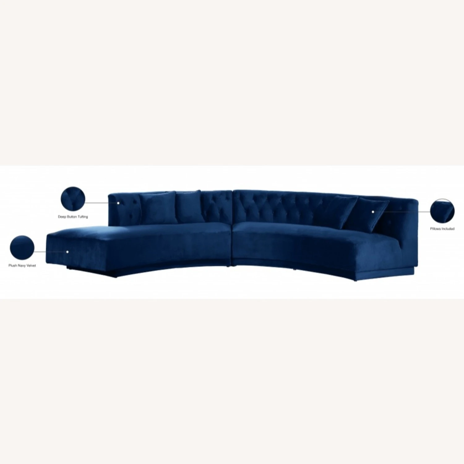 • Deep button tufting adds texture to its plush navy velvet upholstery, and its contemporary design makes this a sectional sofa the perfect focal point for any modern living room.