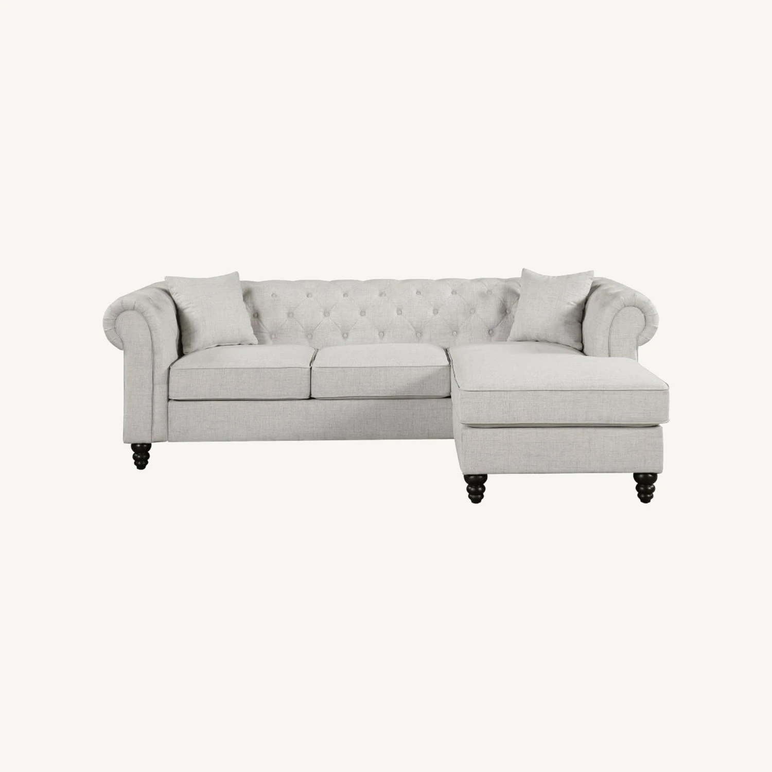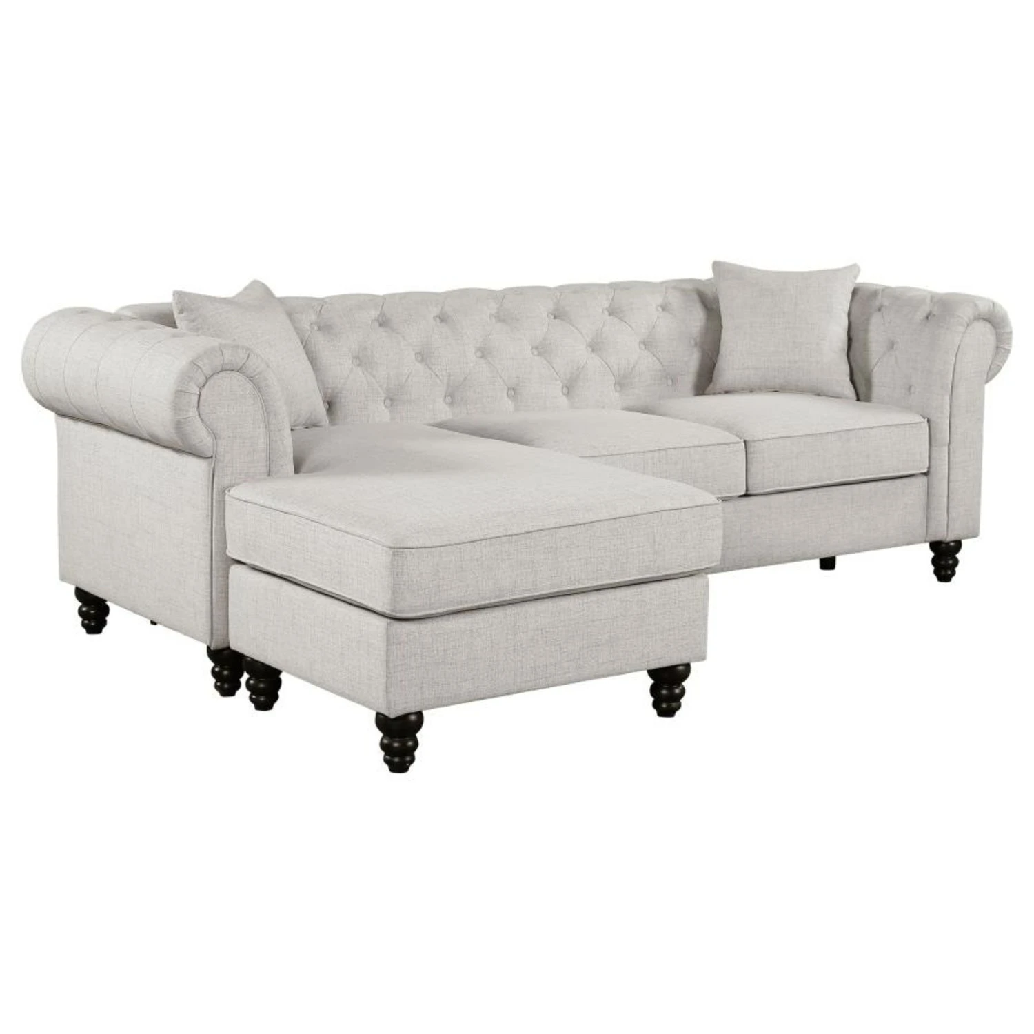 • Versatile two-piece sectional with reversible chaise, ideal for a smaller room setting