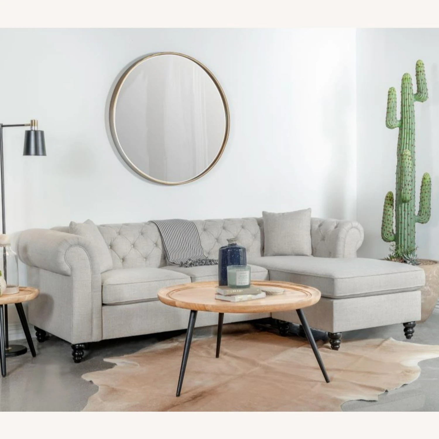 • Wide roll arms frame button tufted inside back