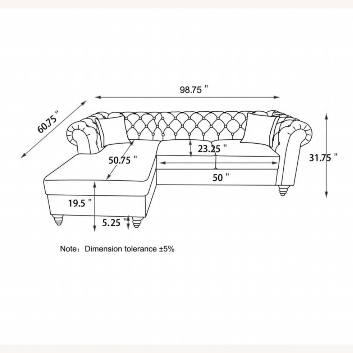 Overall Dimensions: Width: 98.75 inches, Height: 31.75 inches, Depth: 60.75 inches