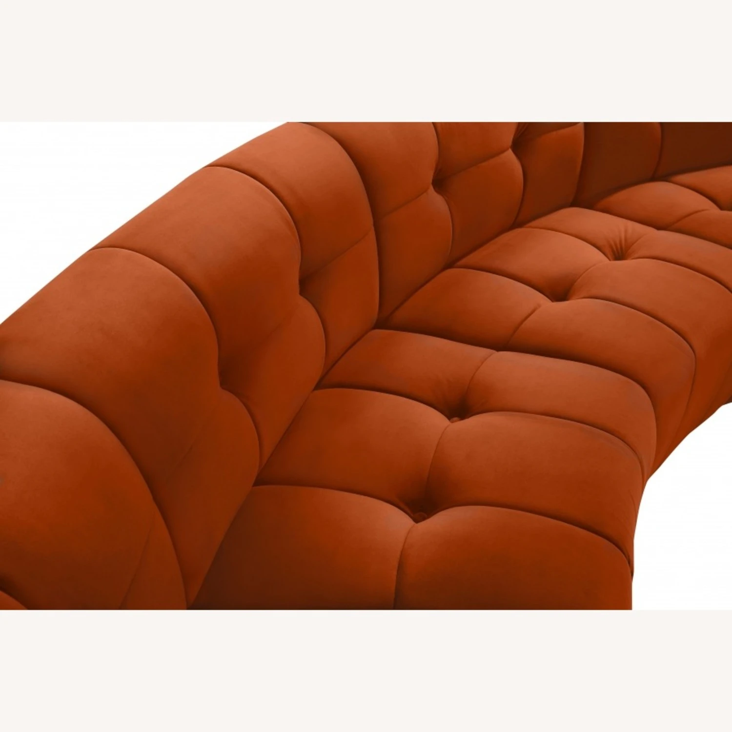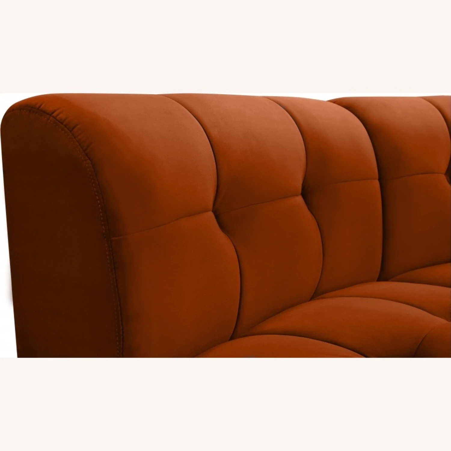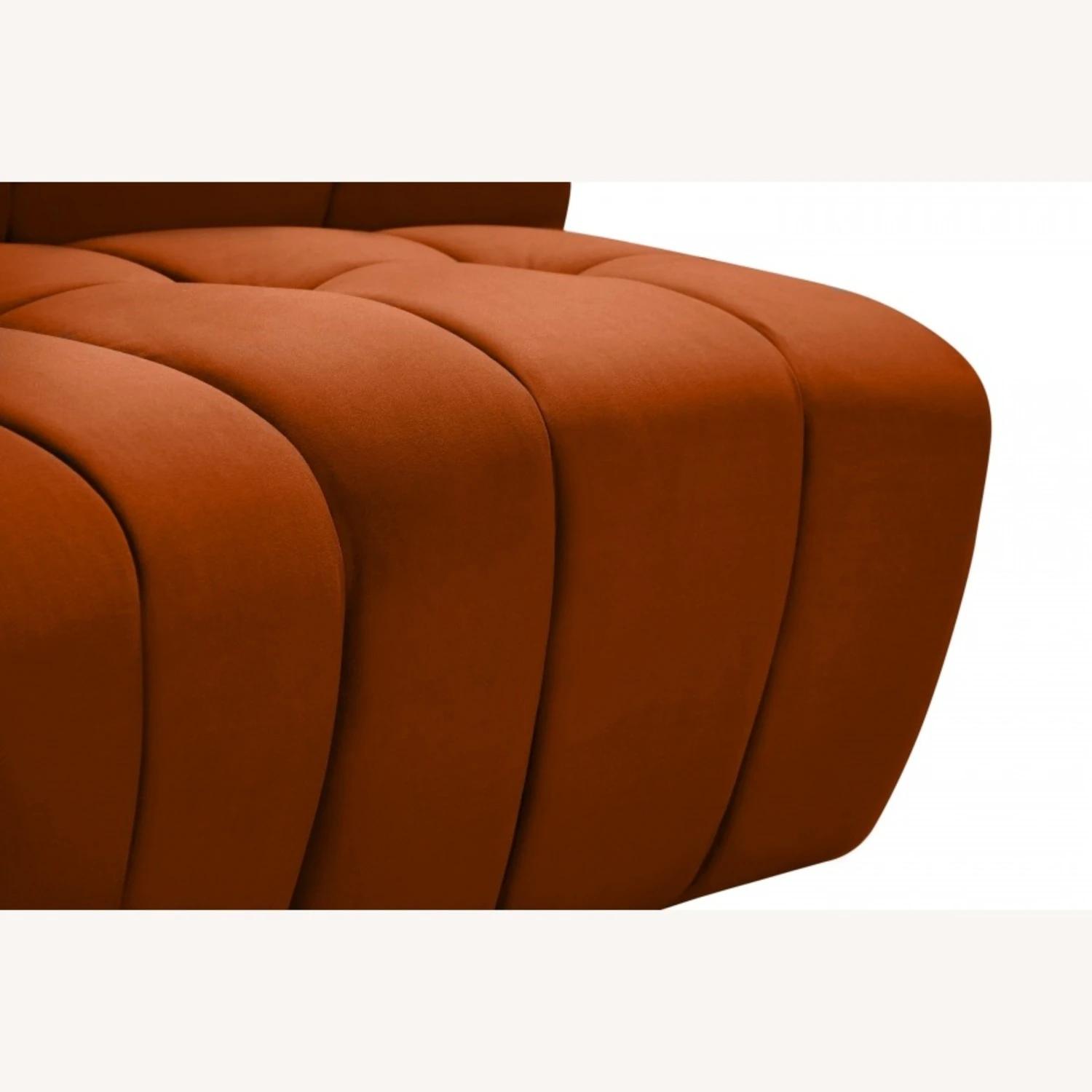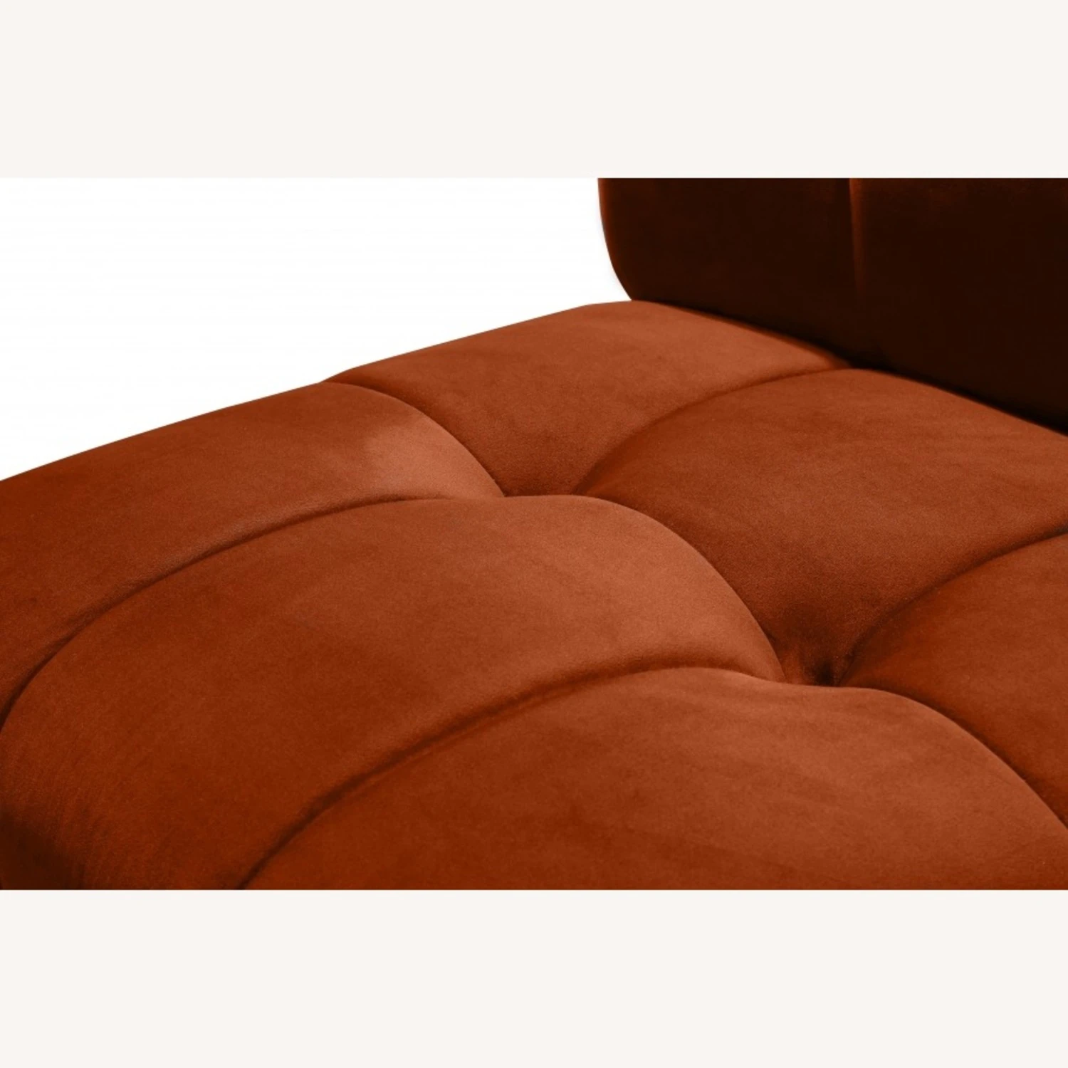 • Upholstered in cognac velvet, this beautiful piece is soft and cool to the touch, so you can feel comfortable from every angle.