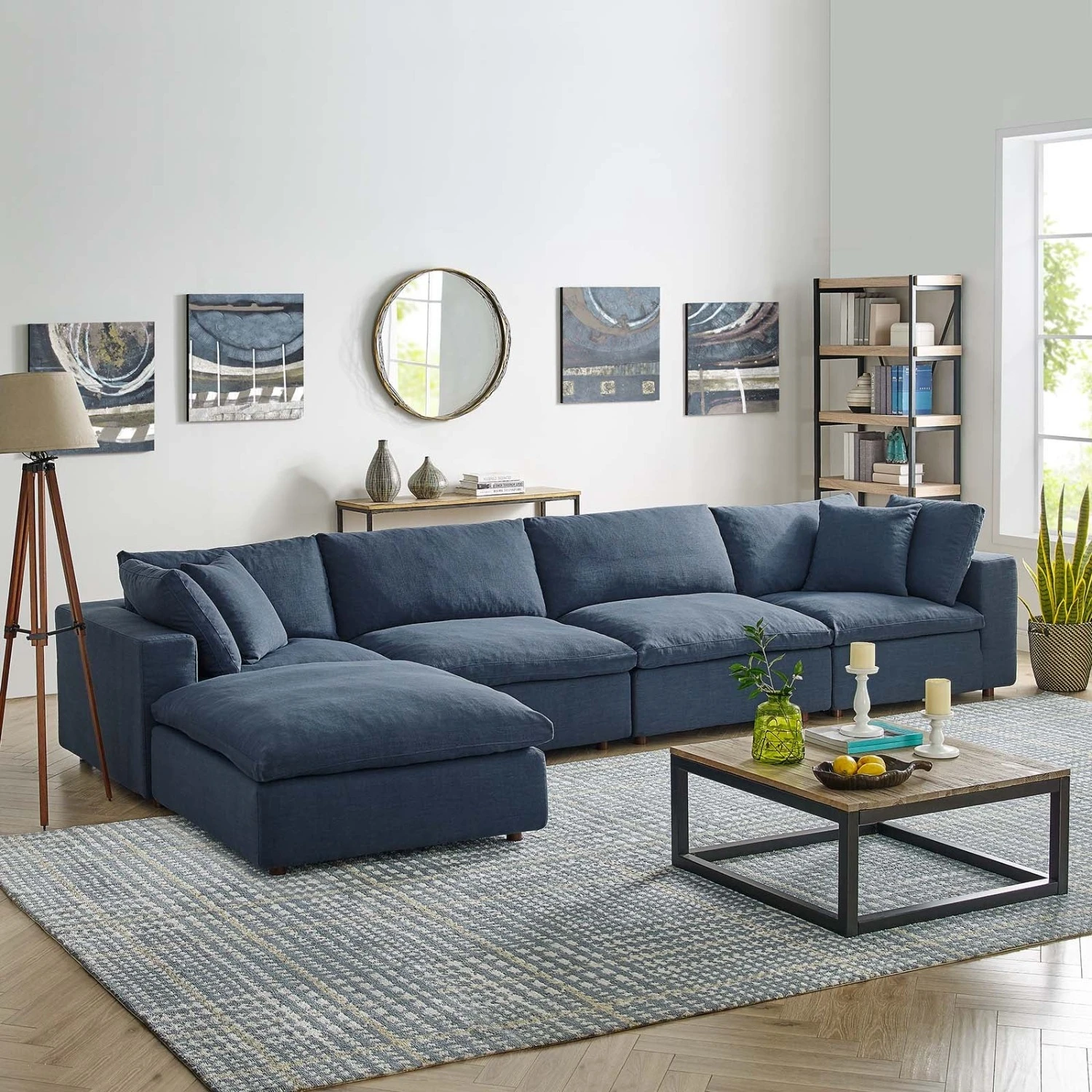 • This comes with generously padded down feather and cotton cushions, and padded foam bases, making this sectional sofa collection perfect for the living room, family room, or game room.