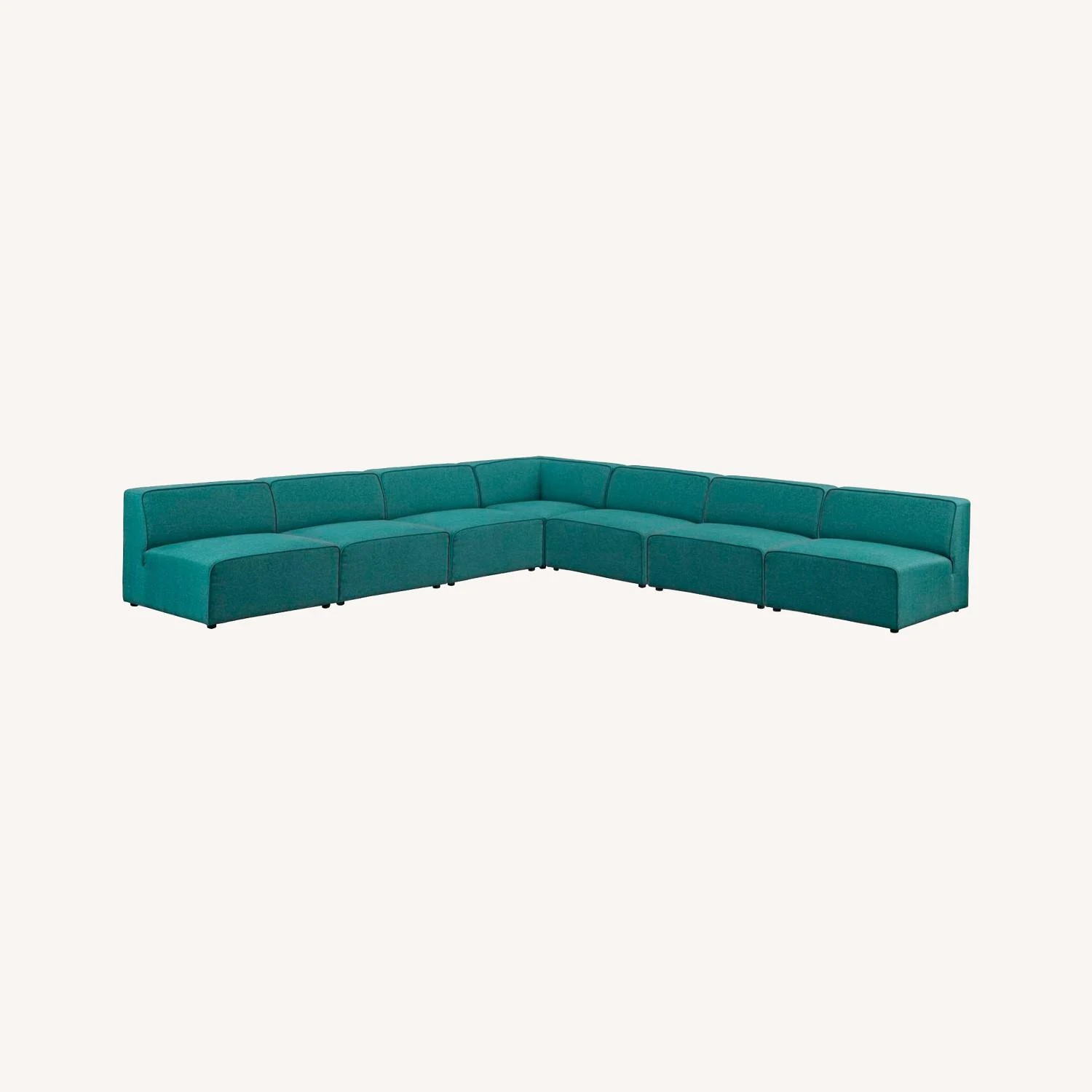 • This sectional sofa easily positions according to the needs of the moment and features richly textured polyester with elegant piping and plastic legs for steady support.