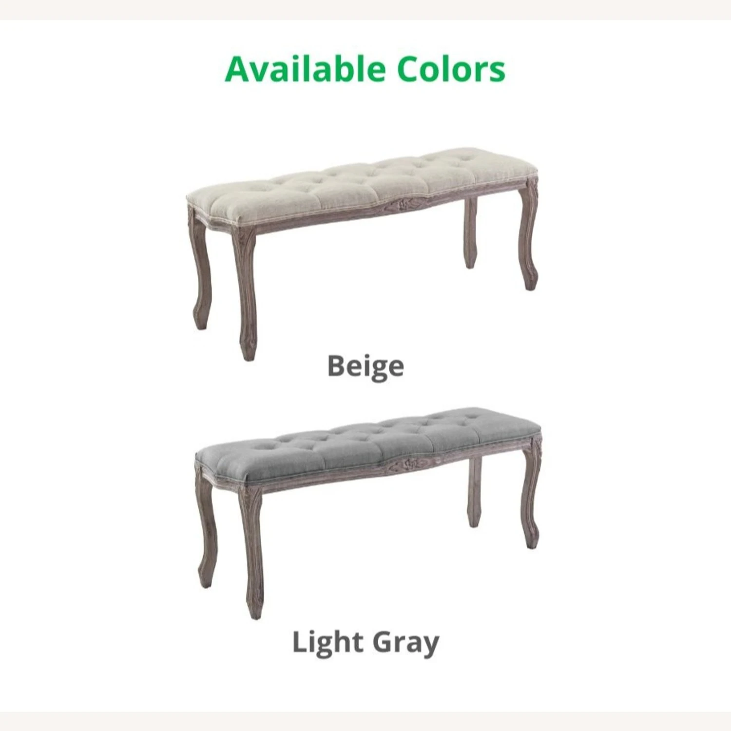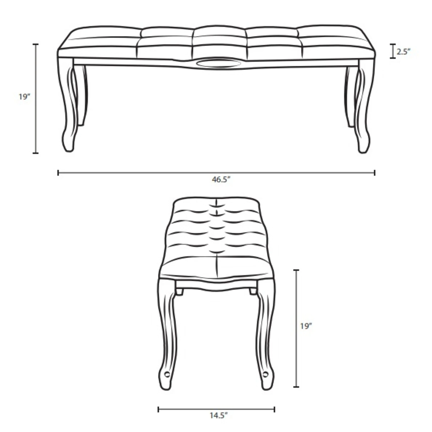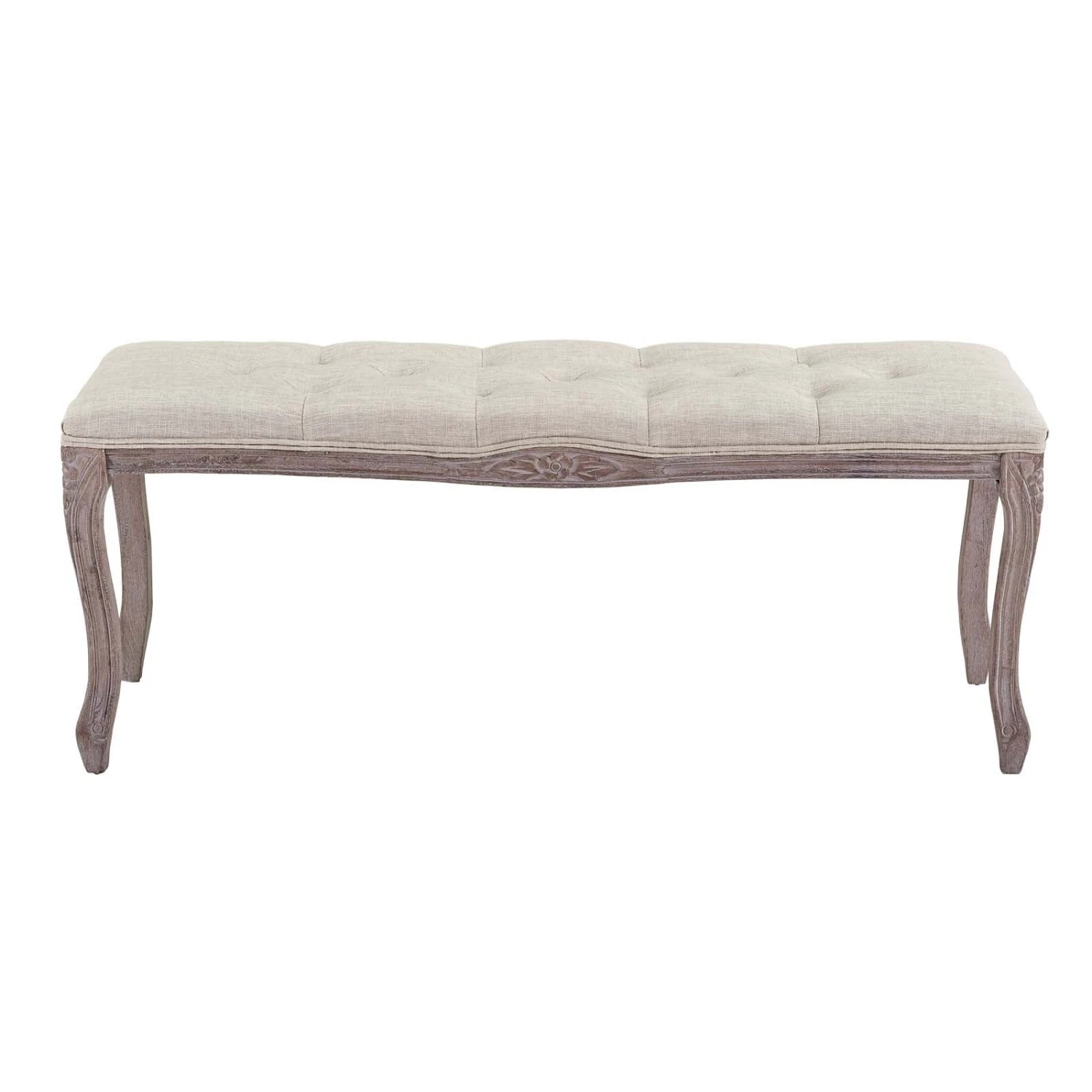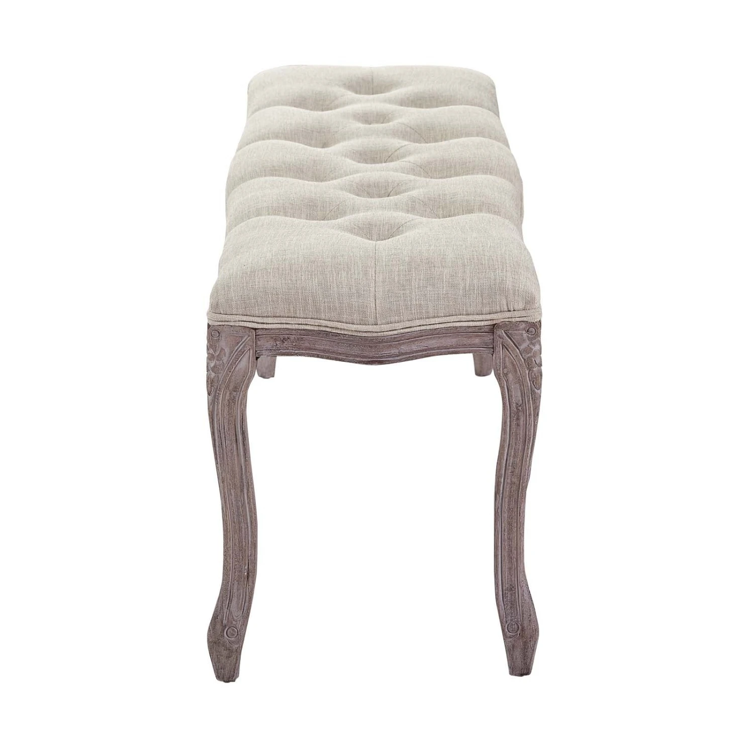 • Featuring a fluted wood frame with elegant cabriole legs, dense foam upholstered fabric seat with welting and button tufting, this bedroom or entryway bench harmoniously blends old world charm with modern intrigue.