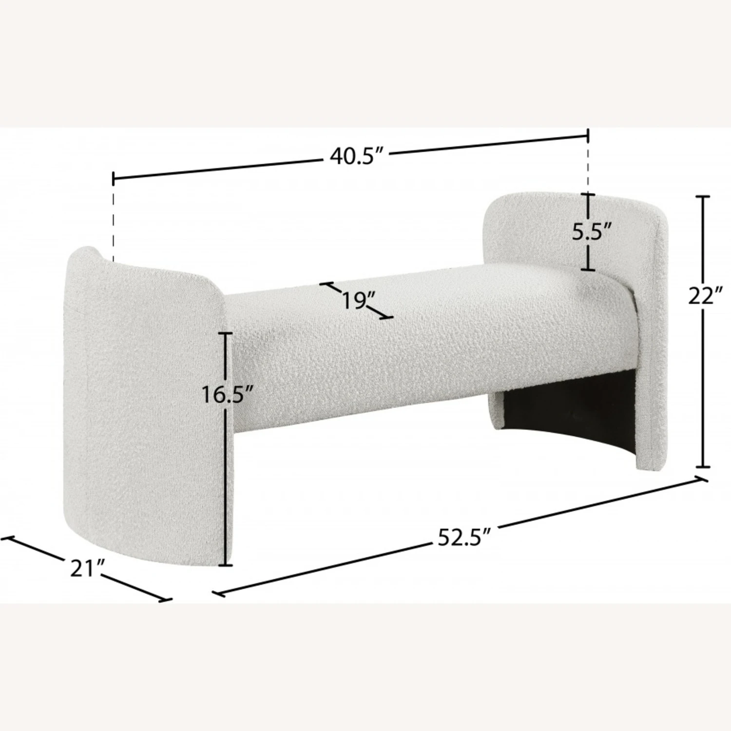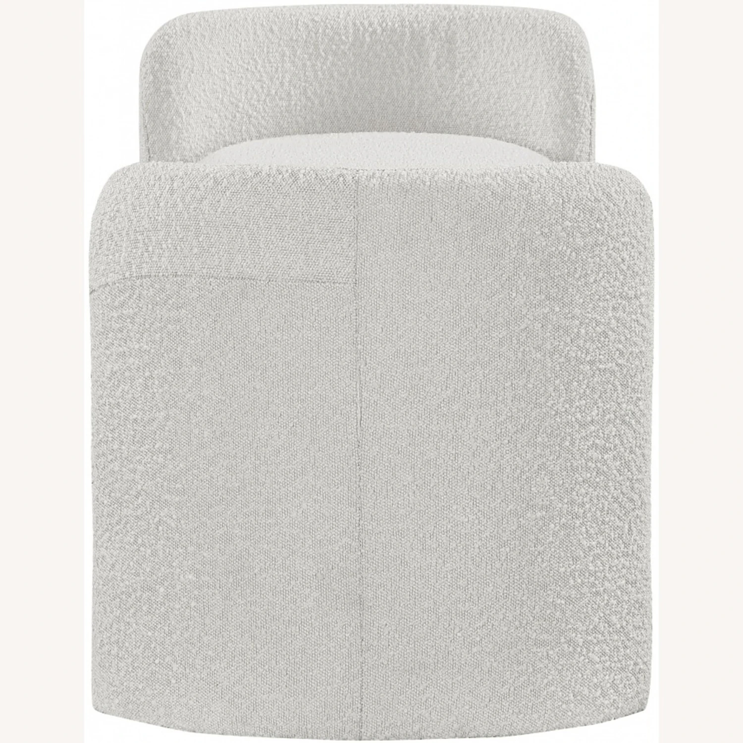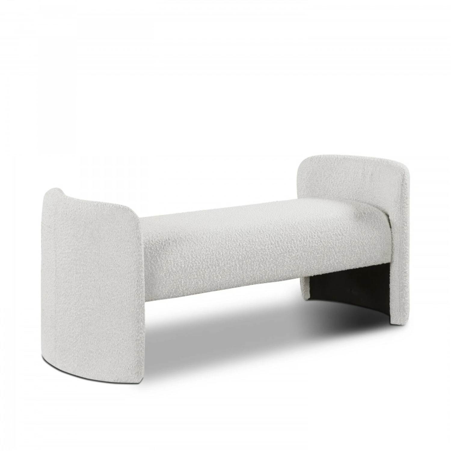 • The rounded arms and the non-assuming style lend this bench an air of contemporary panache while the rich cream boucle fabric lets it easily mesh with your room’s color scheme.