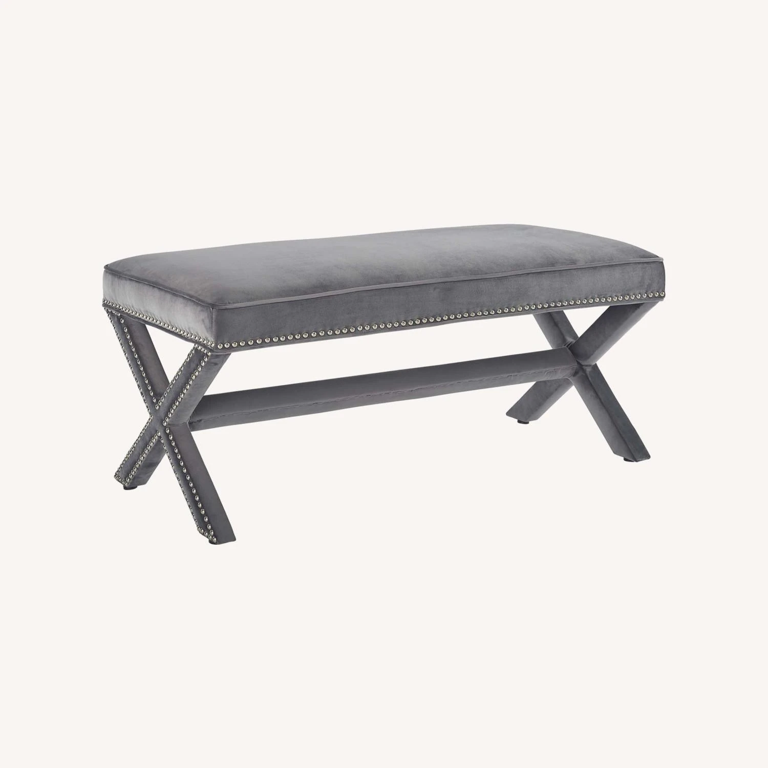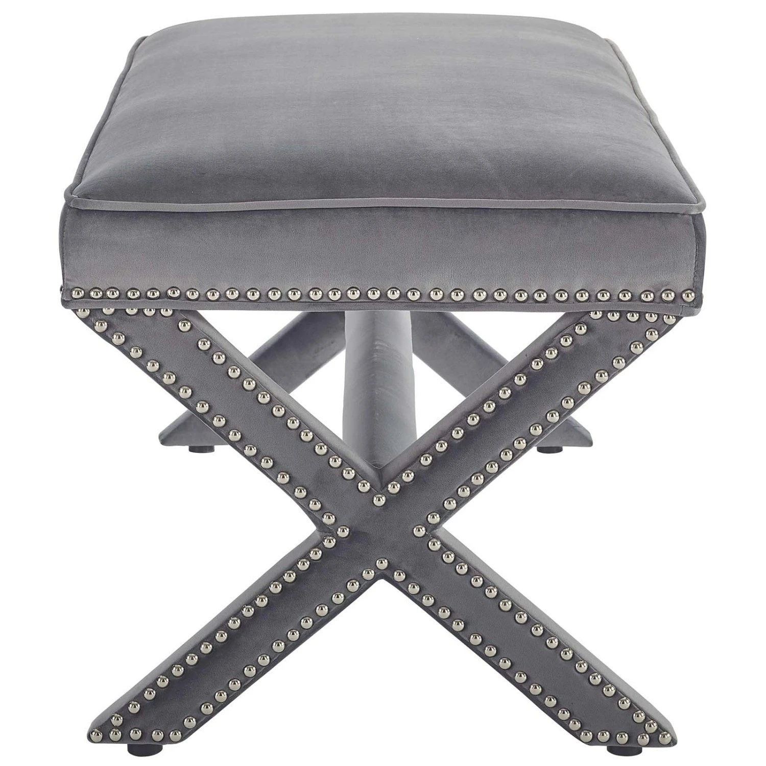 • Featuring timeless nailhead trim, an elegant X-base frame, and surrounded by stain-resistant performance velvet fabric with dense foam padding, this is a perfectly soft and cozy bench for the chic modern lifestyle.