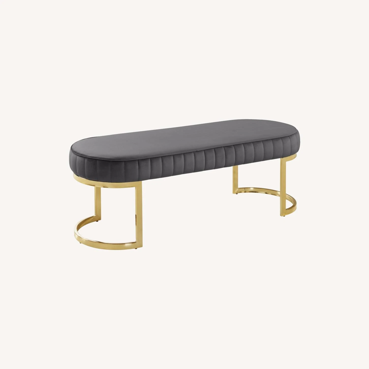 • The gold tone base with geometrically curved legs adds to the posh look of this handsome bench, and the plush top of the bench is thickly padded and covered in rich black velvet for an exquisite and luxurious feel against the skin.