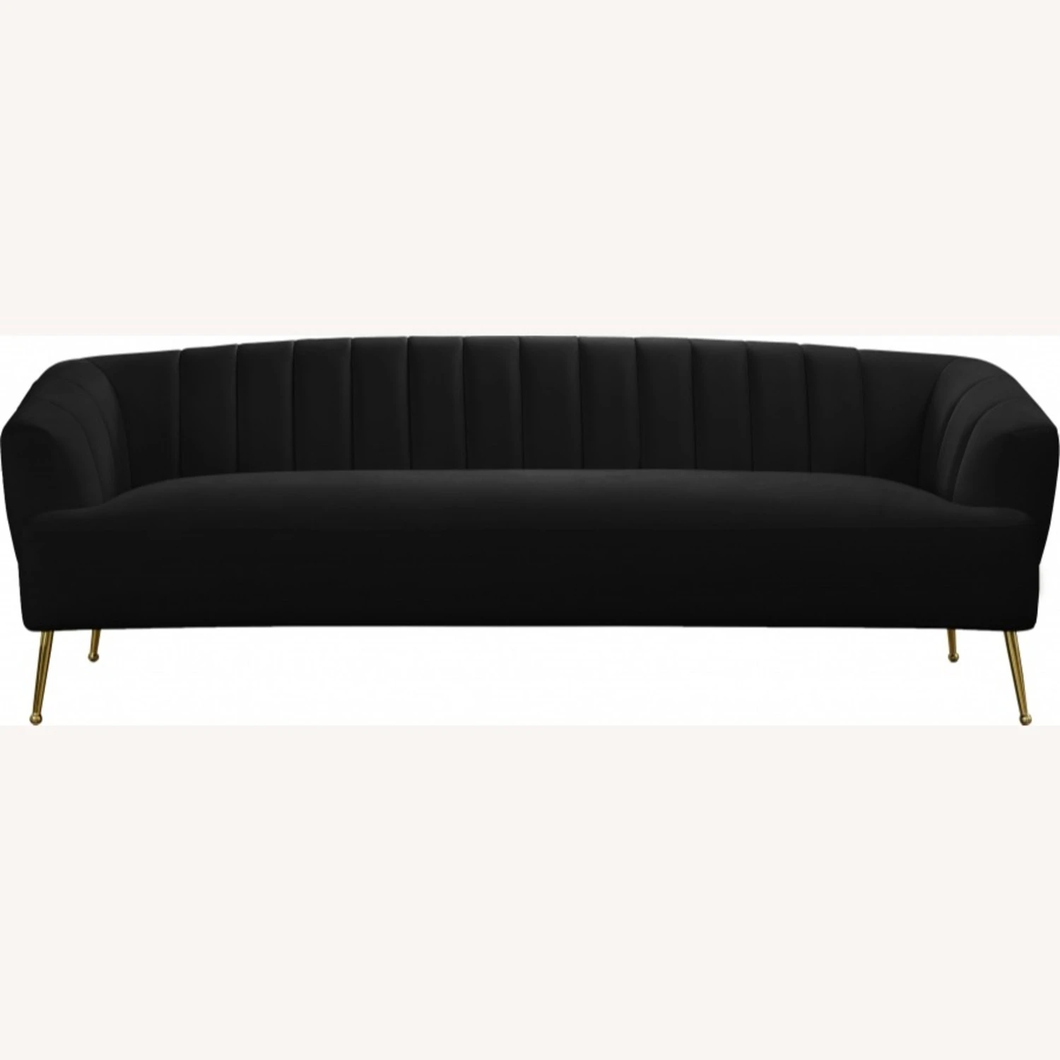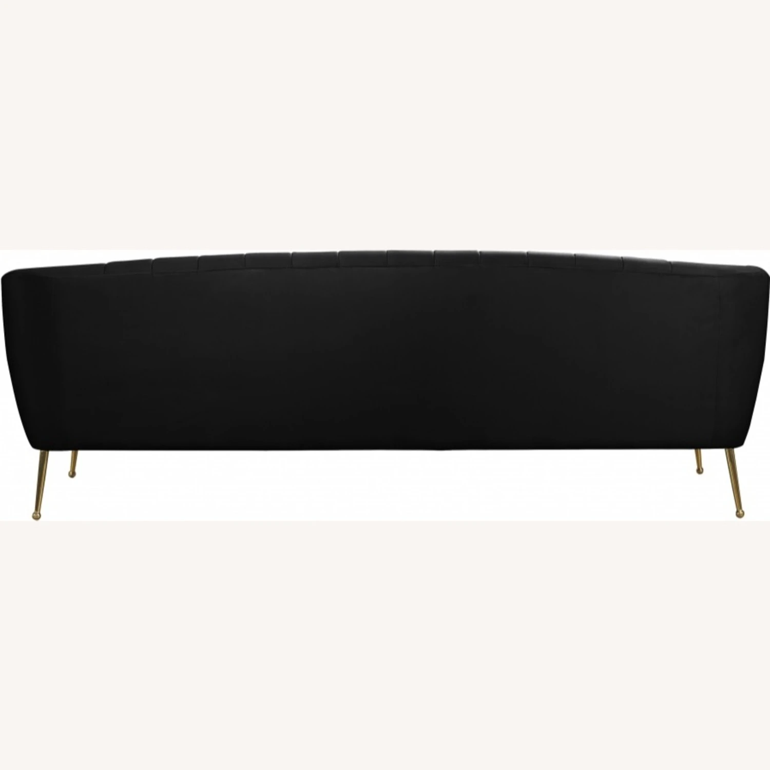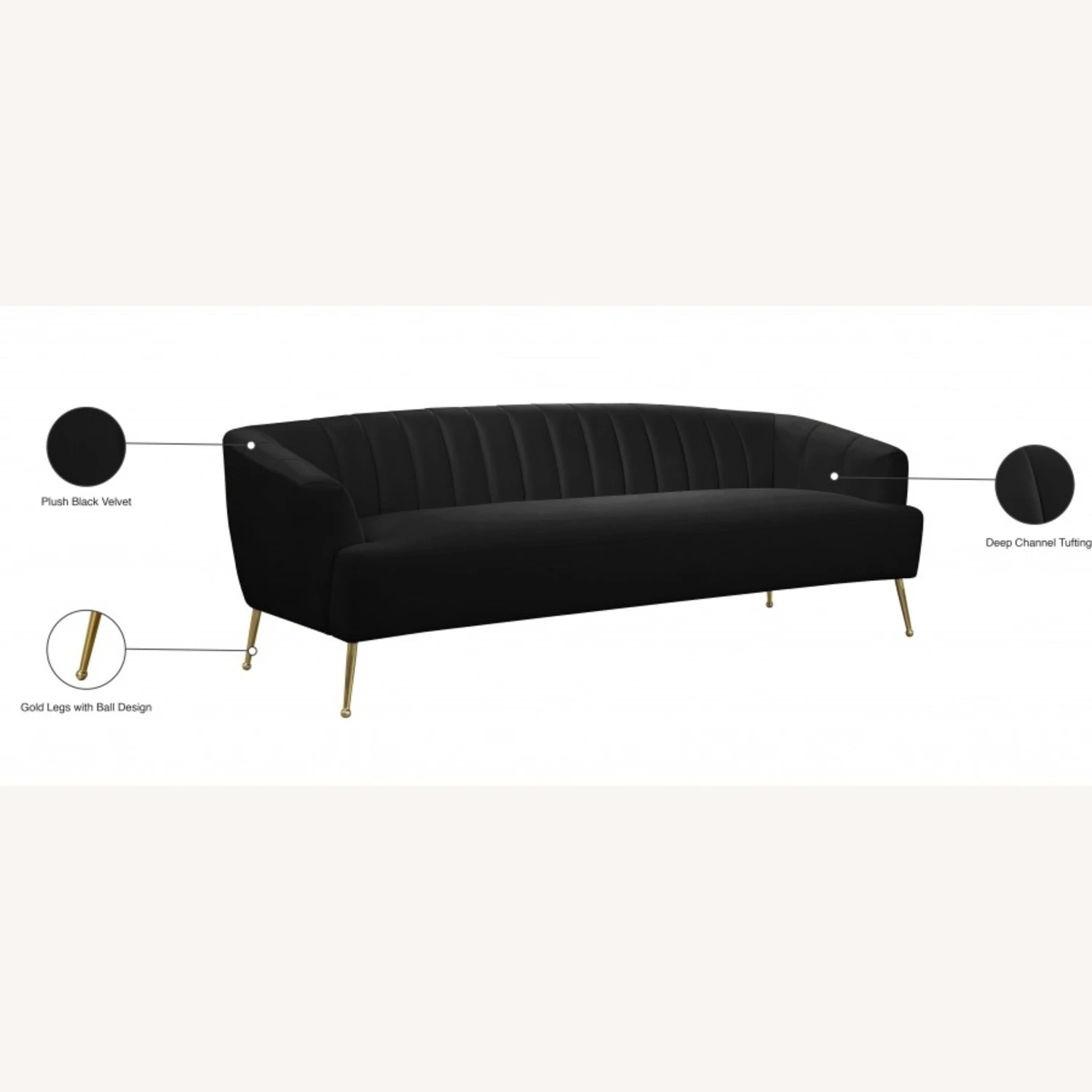 • This plush sofa features sleek black velvet upholstery that covers every square inch, adding a sumptuous and svelte look to your room.