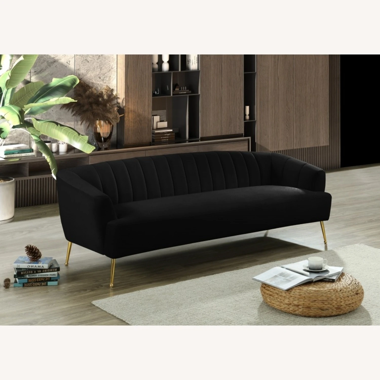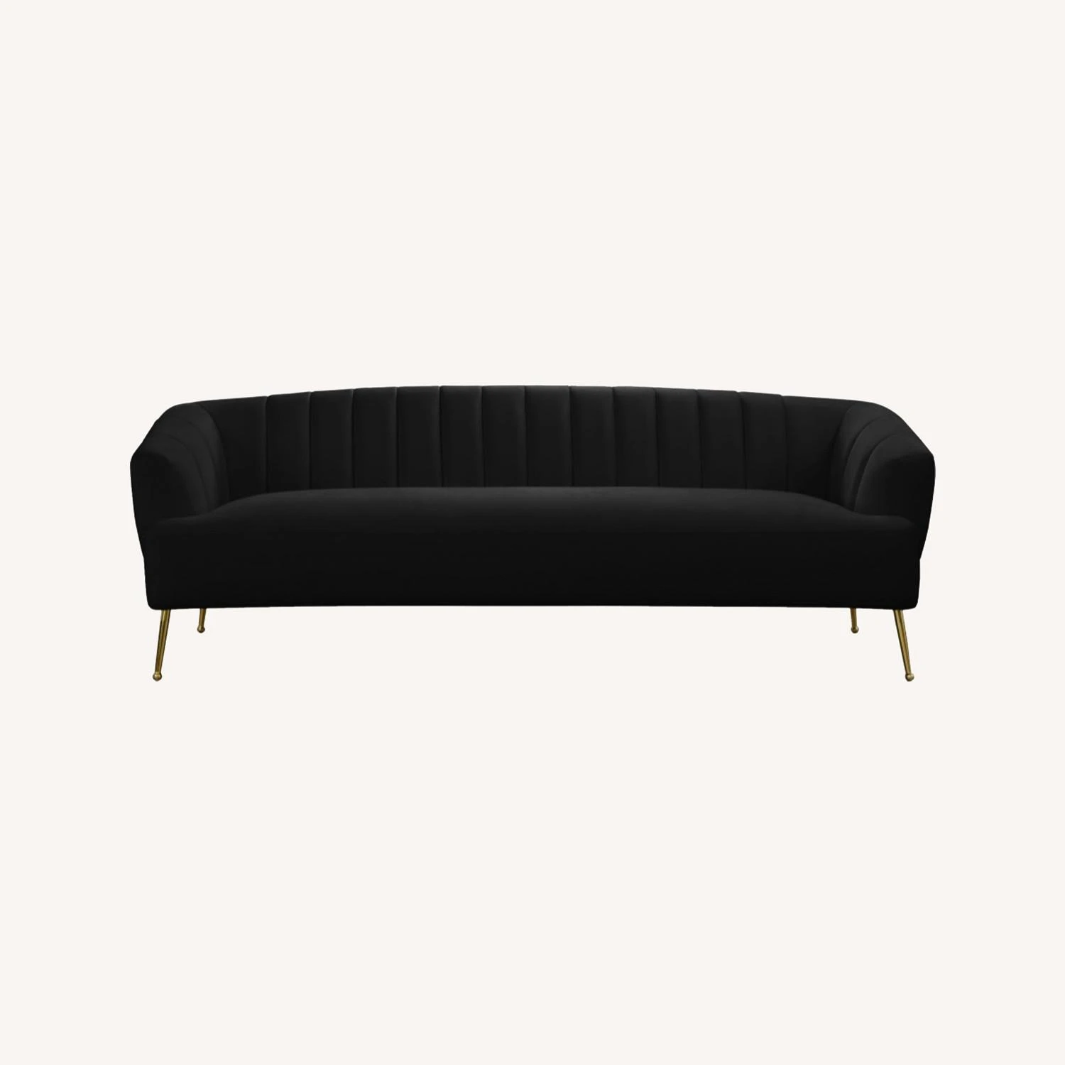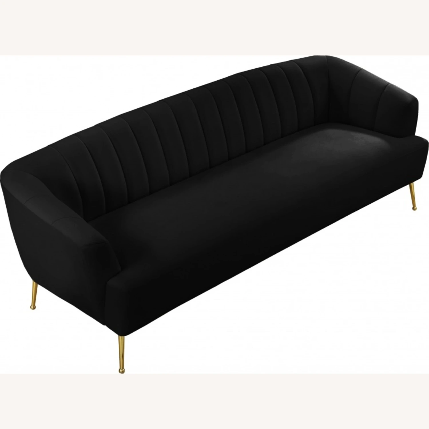 • This plush sofa features sleek black velvet upholstery that covers every square inch, adding a sumptuous and svelte look to your room.