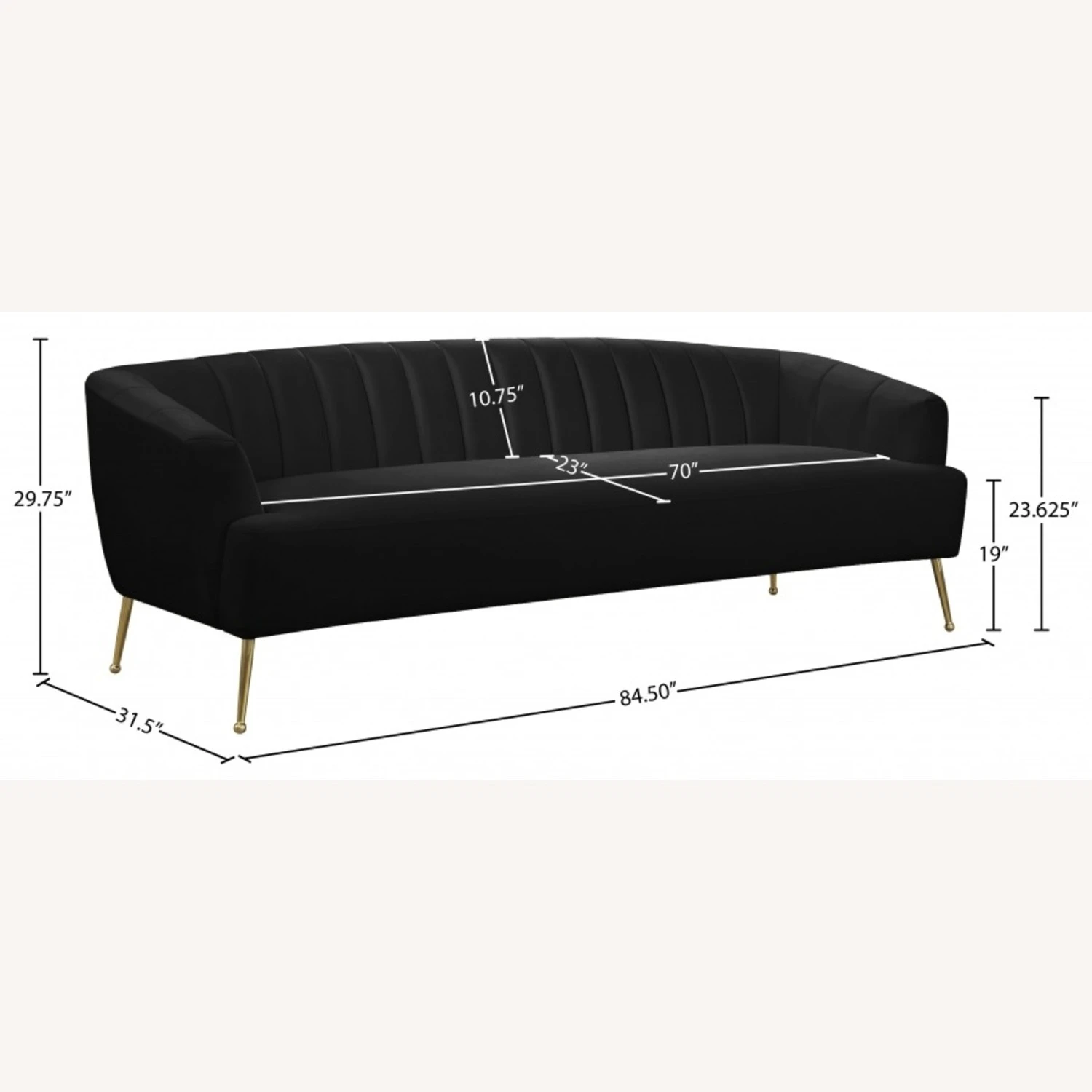 Overall Dimensions: Width: 84.5 inches, Height: 29.75 inches, Depth: 31.5 inches
