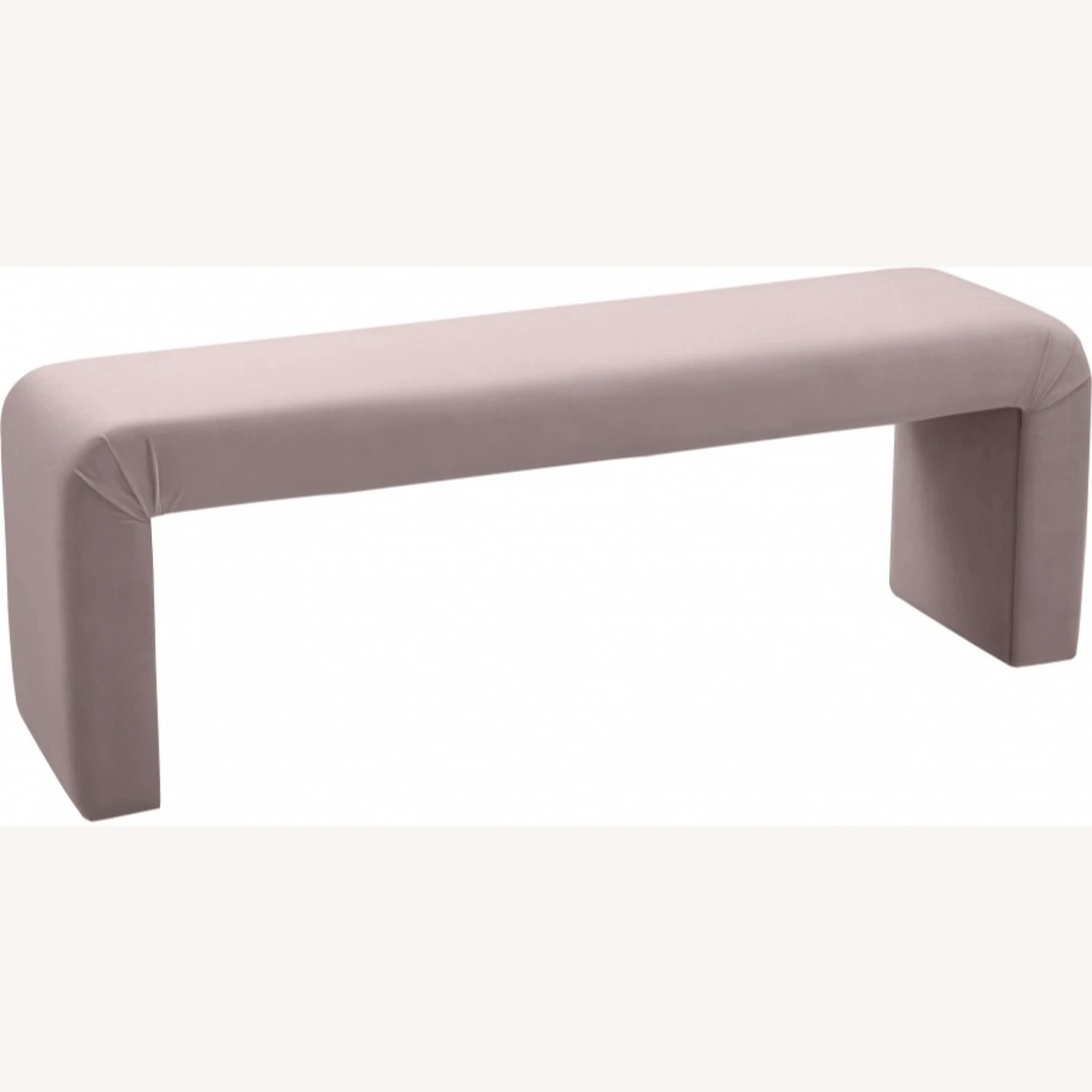• Covered in soft pink velvet material all over, this bench is bound to impress guests from all angles, from the mudroom to the foot of your bed in the master suite.