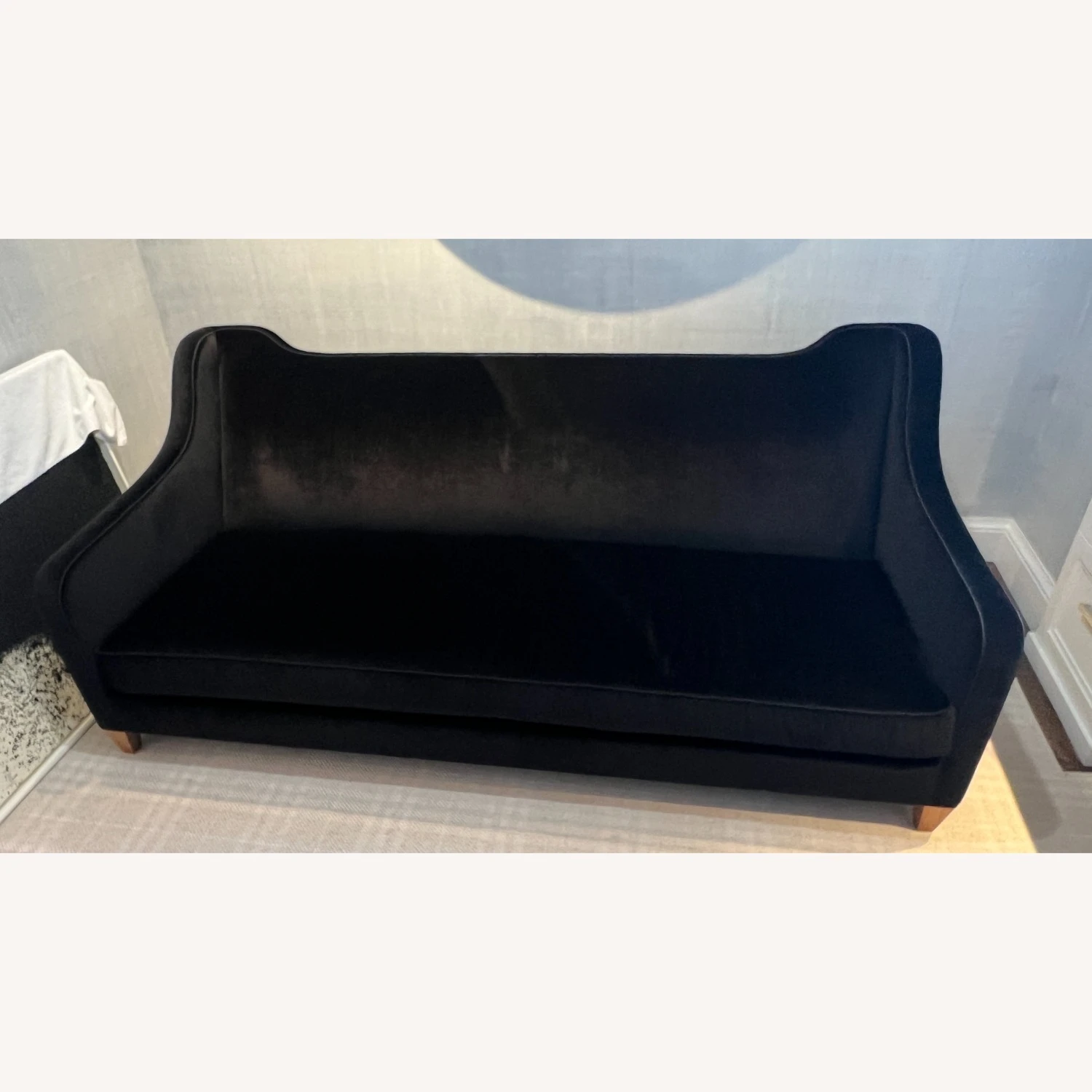 Seller’s Notes: Beautiful Custom Black Mohair 3 Seater Sofa with black piping in great condition.