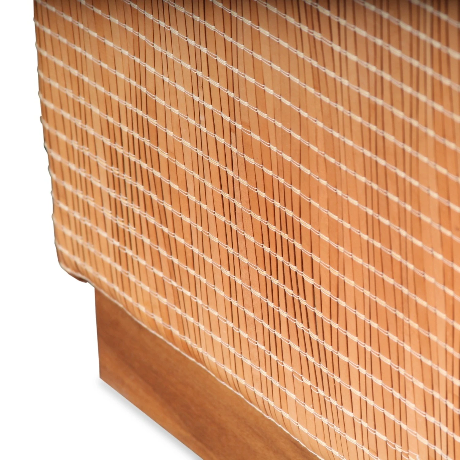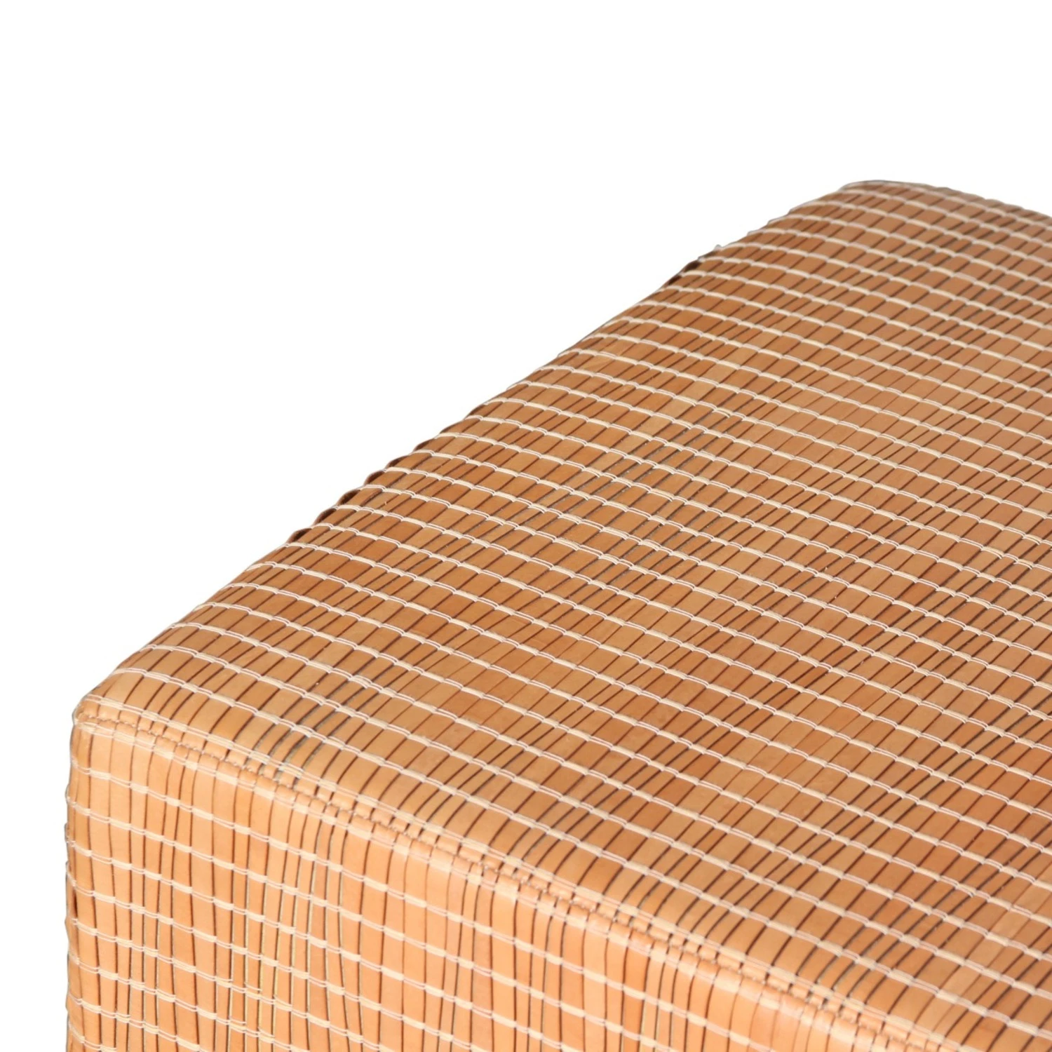 Custom made bench with walnut 3″ base frame covered with a handwoven Italian Leather.