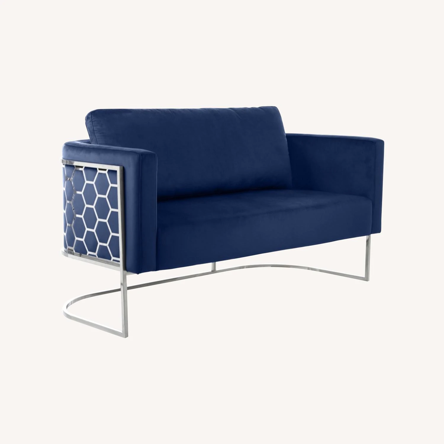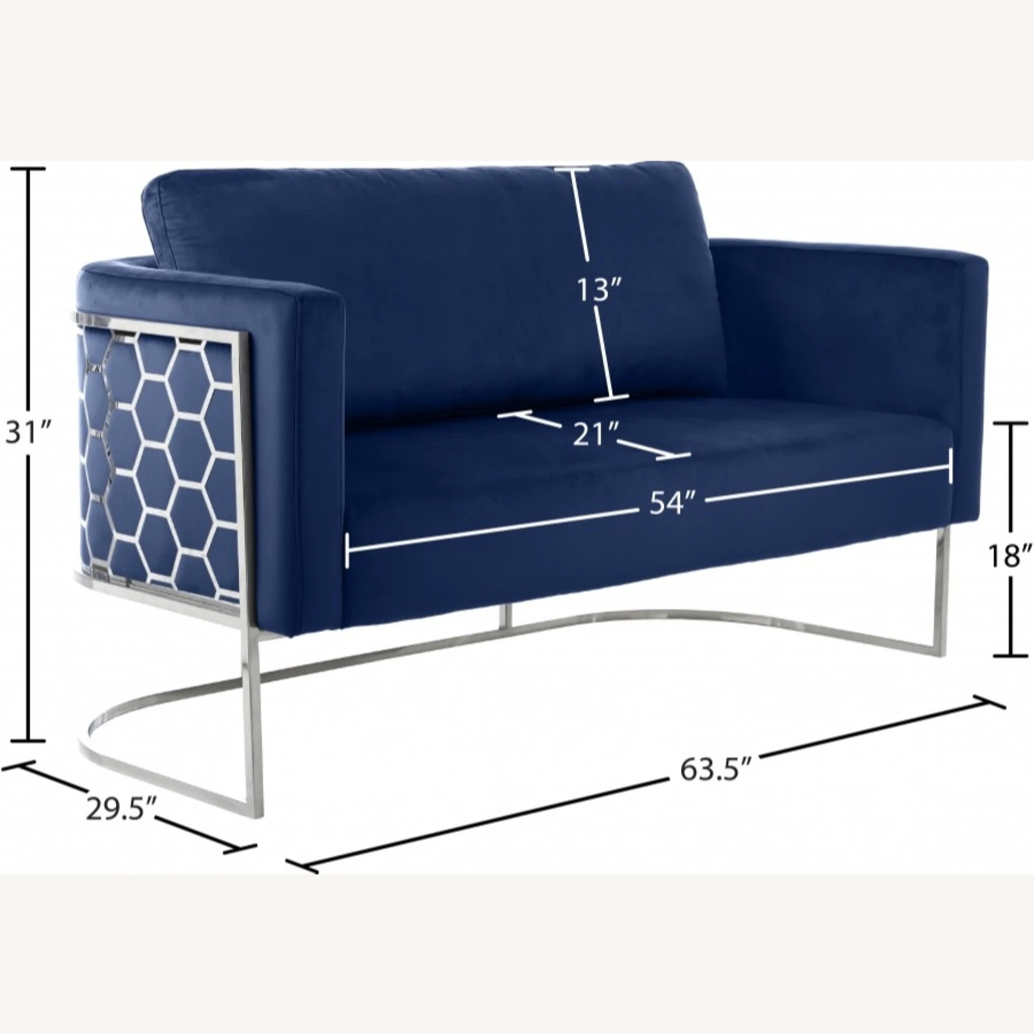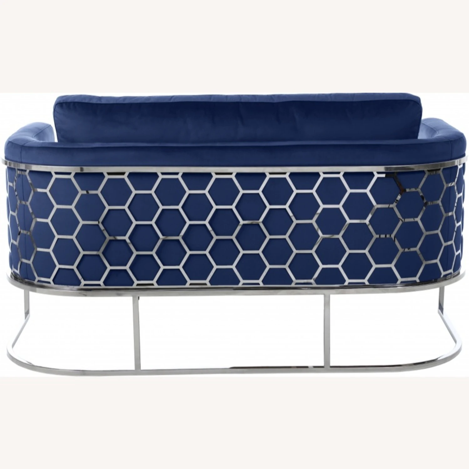 • Its soft navy velvet upholstery is touchably soft and feels great against the skin, and its chrome iron metal frame featuring a honeycomb pattern lends the chair an up-to-the-minute feel.