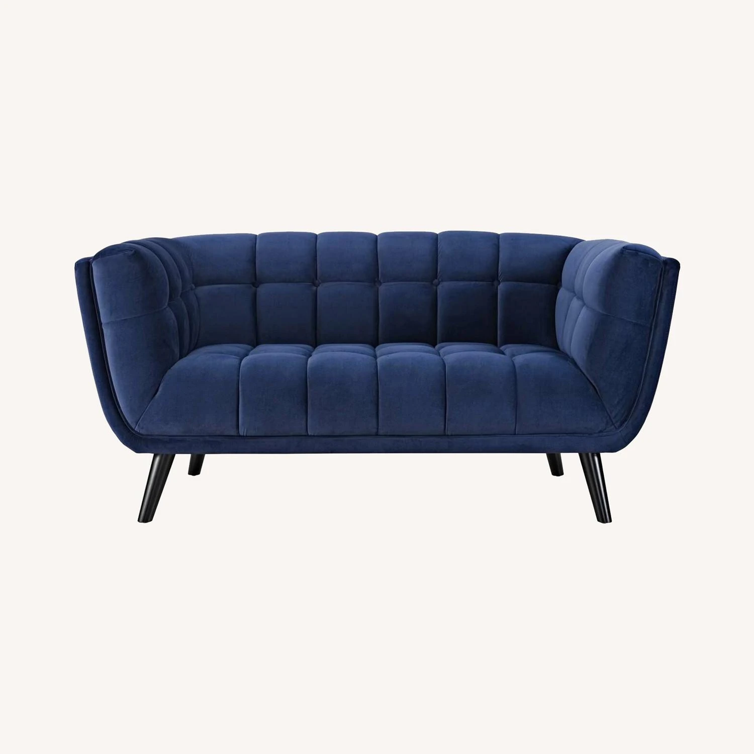 • Uniquely designed with a striking broad profile, this loveseat comes upholstered in soft, stain-resistant performance velvet polyester with dense foam padding and elegant button tufting.
