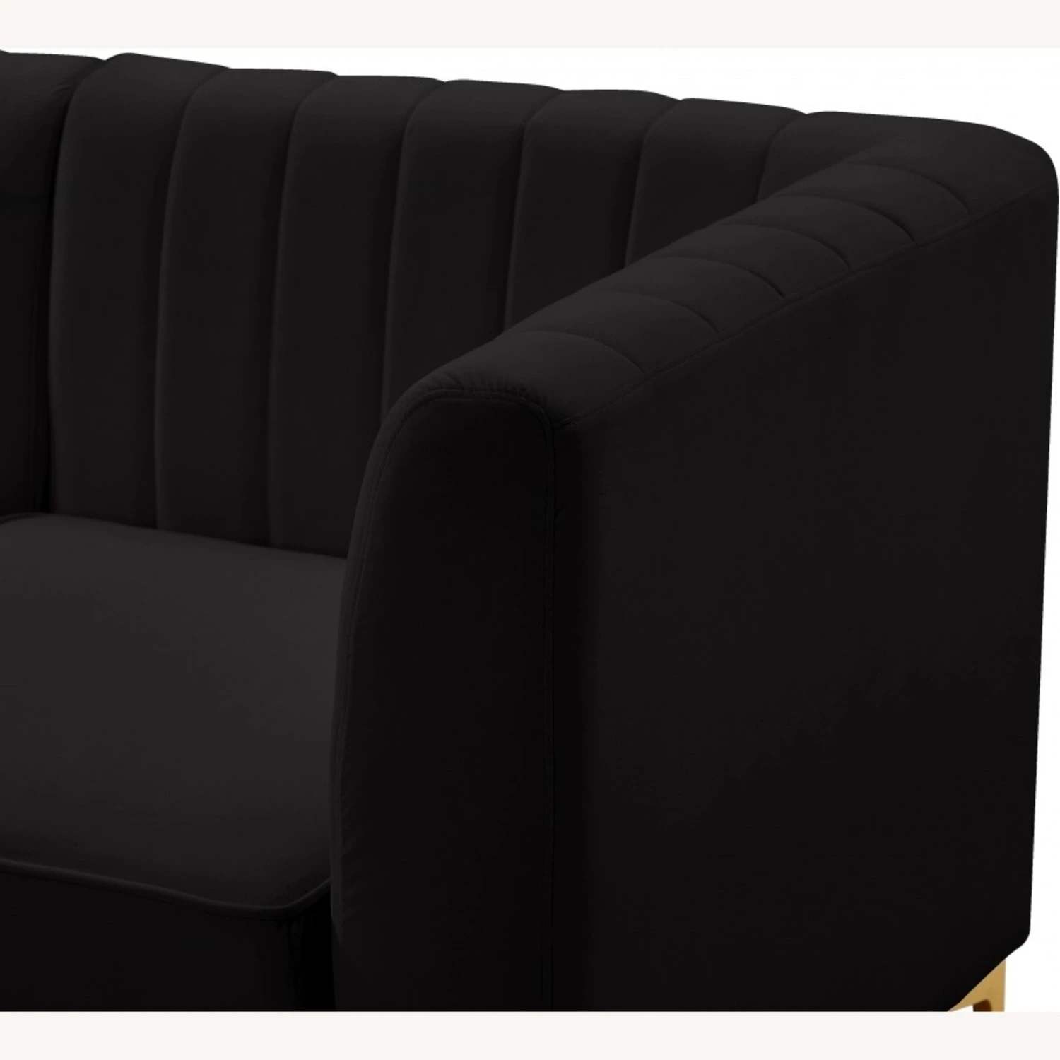 • Its soft black velvet upholstery blends nicely with existing elements in your room and is sleek to the touch, making this seat a super comfortable one.