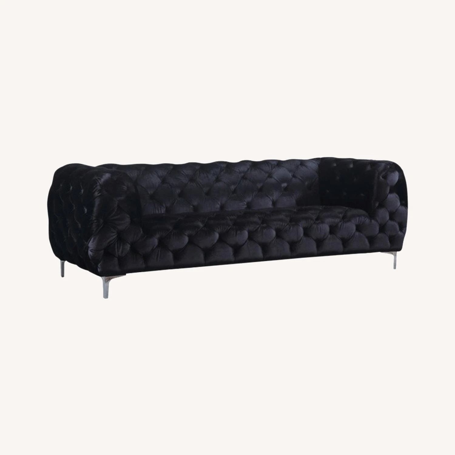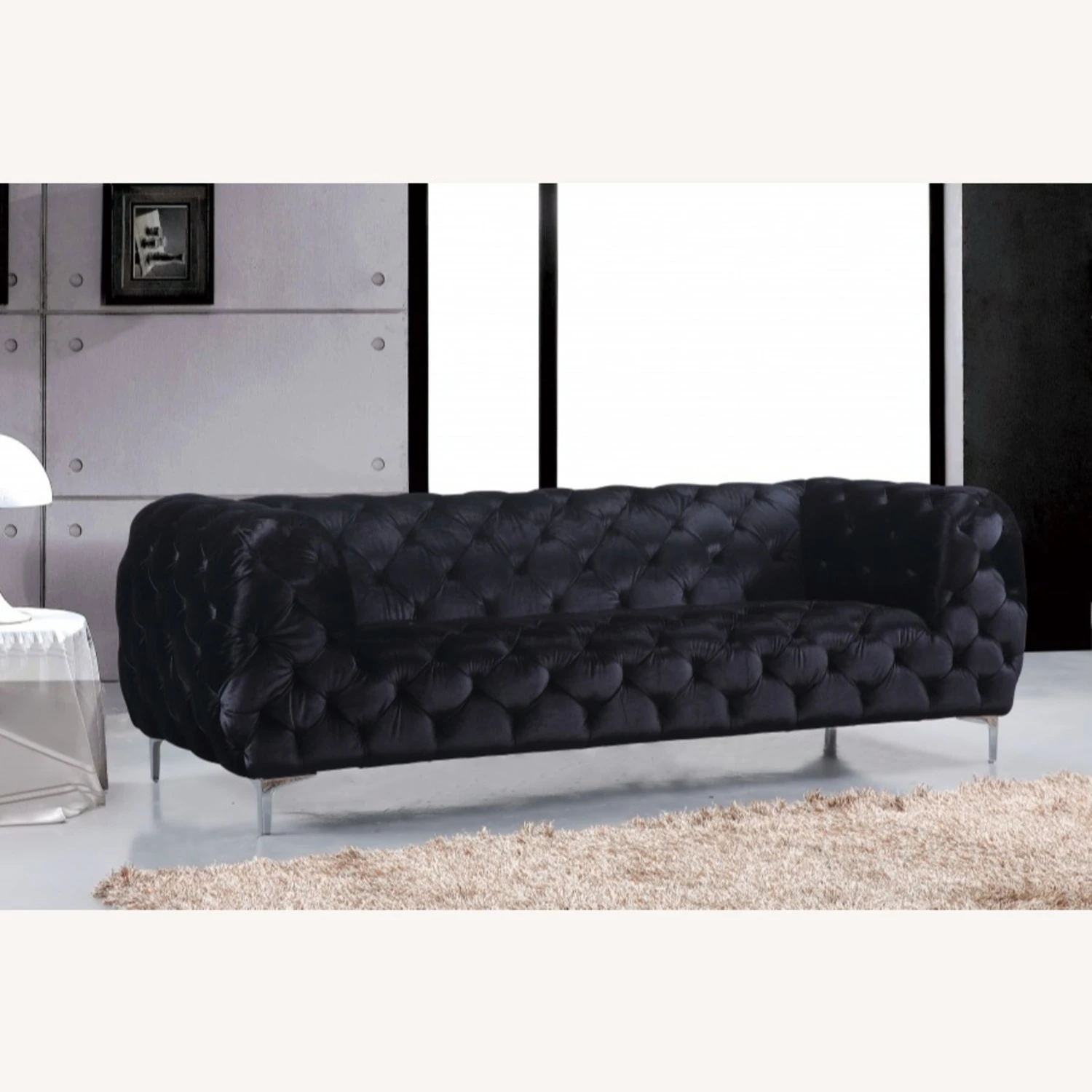 • Rich Velvet covers the plush, comfortable seat, padded with high-density foam and modern tufted design.
