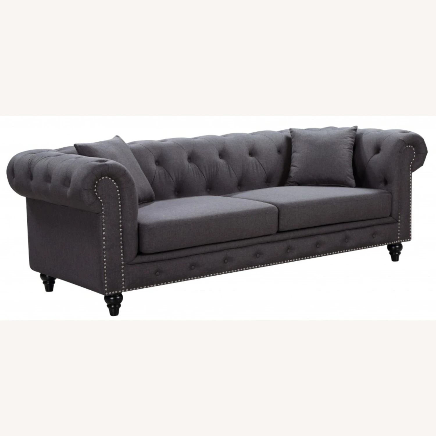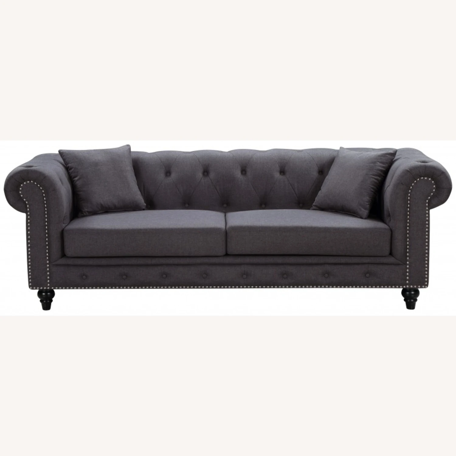 • Rich Linen covers the plush, comfortable seat, padded with high-density foam and modern tufted design.