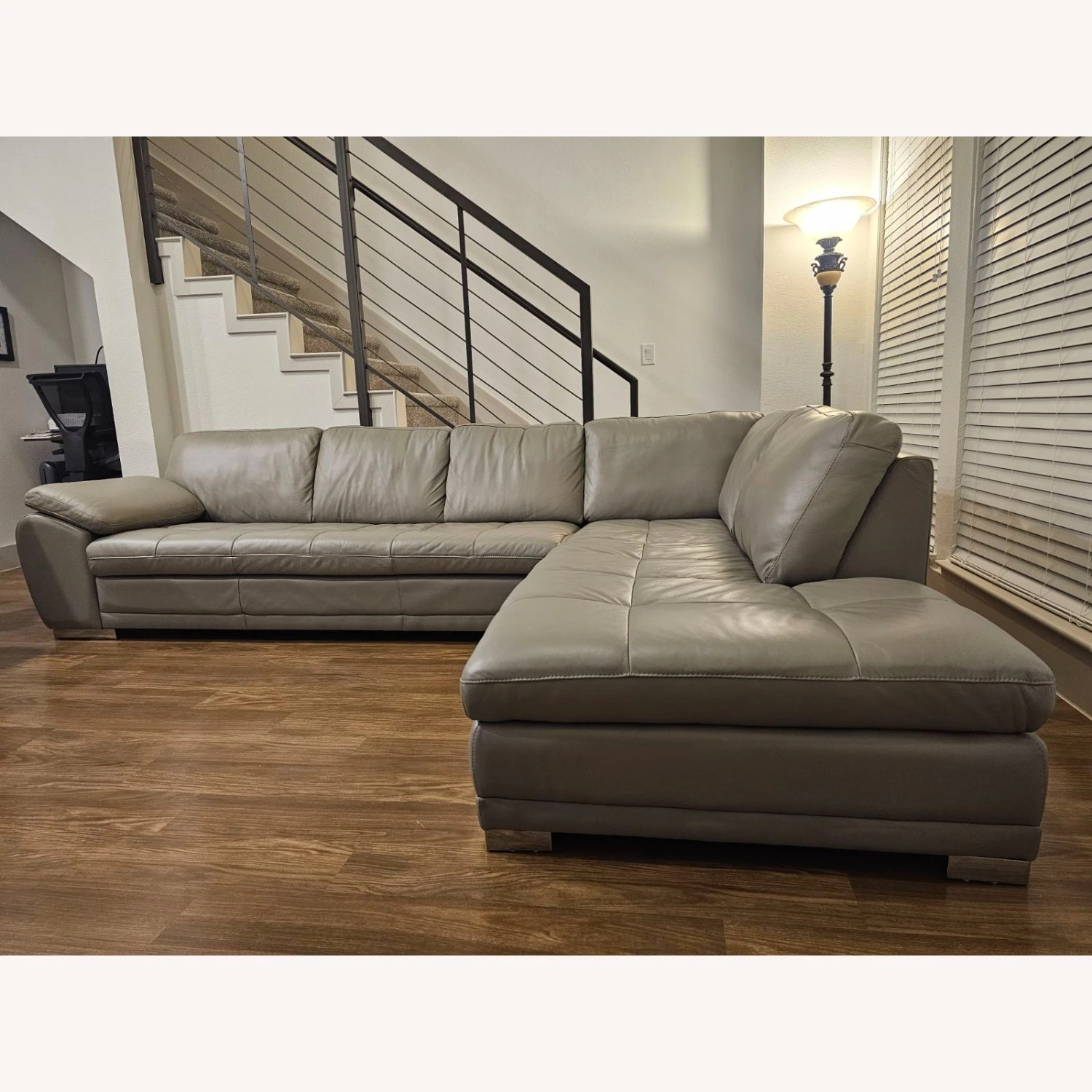 Seller’s Notes: We are couple with no children or pets that lightly used this sectional. It was more of a decoration piece in our home. However we moved to a new city for work and our new place is smaller for this sectional to fit comfortably in this space. It’s hard to let it go because it truly is a luxurious leather sectional that is soft and durable but we are sure it will find a new home quick.