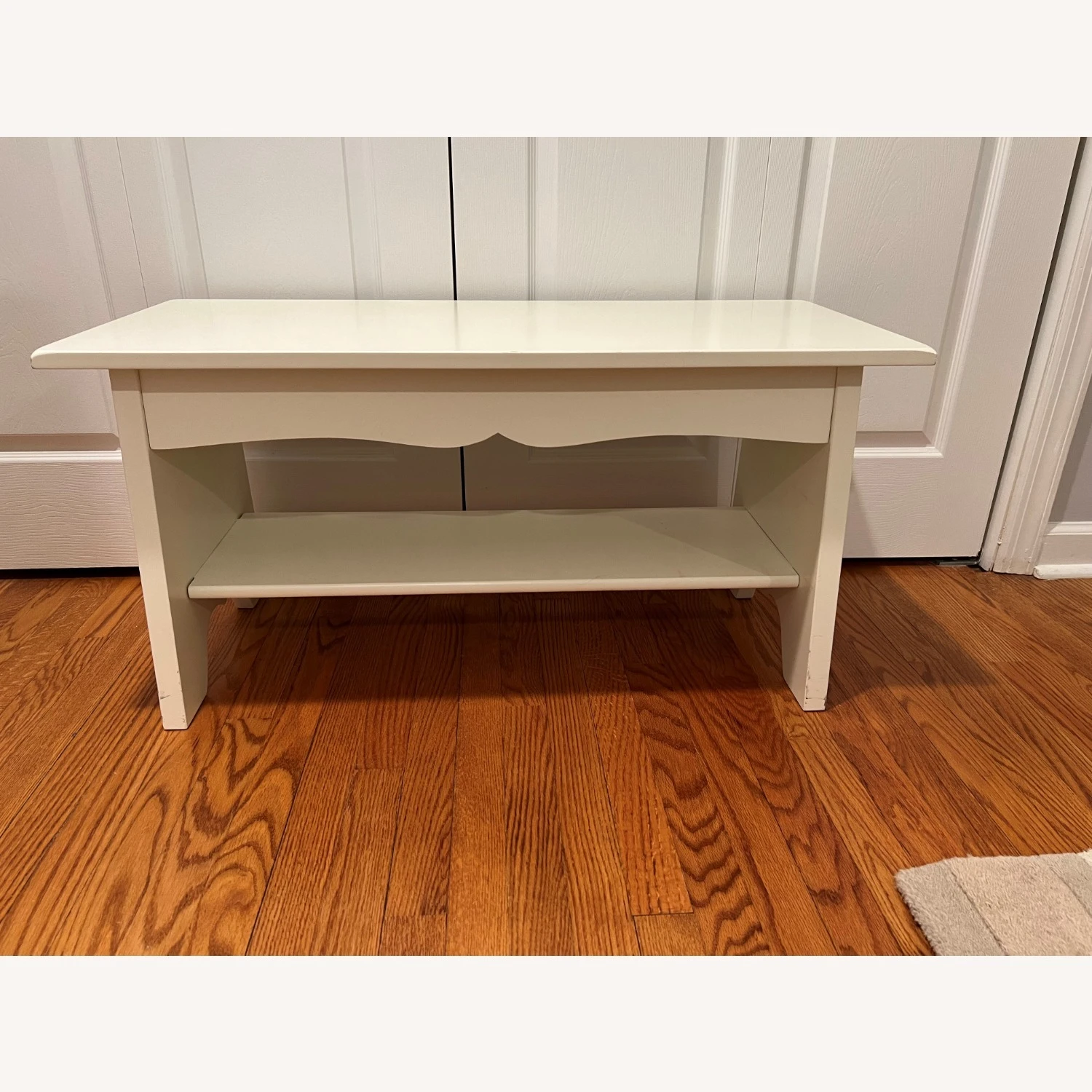 Seller’s Notes: Purchased for my daughter’s bedroom, which she wants to change to reflect her change in taste. The bench is still in excellent condition, save for a few scratches on the edges.