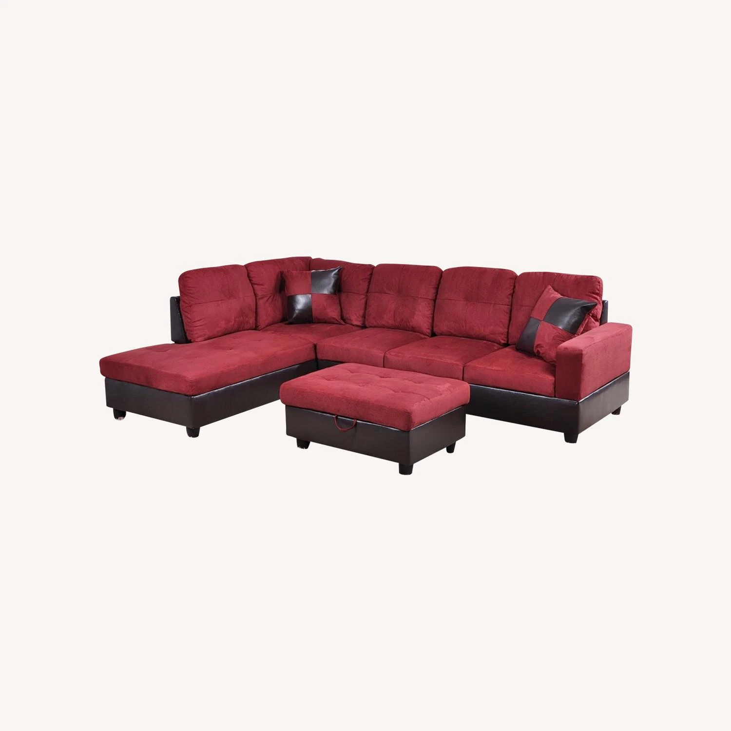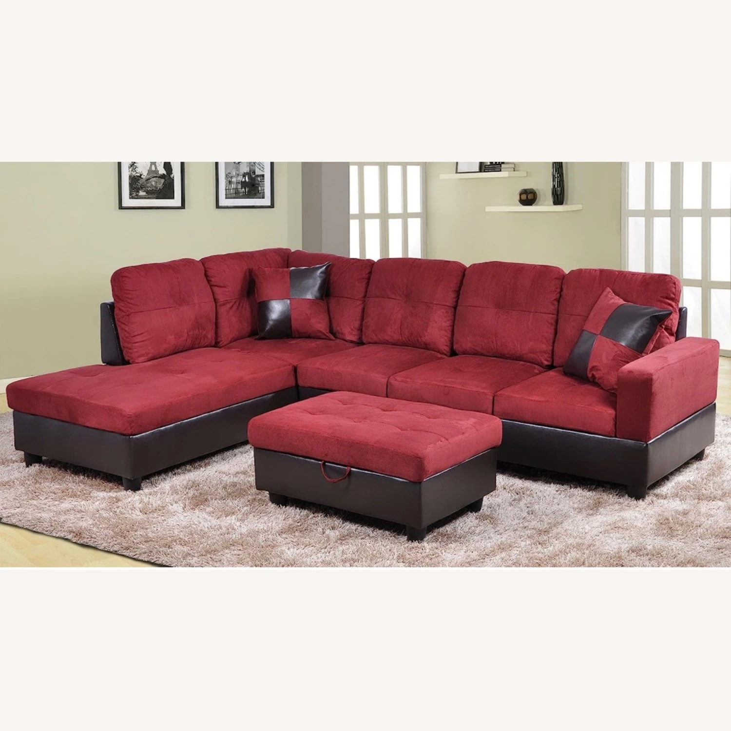 3-Pieces Faux Leather & Microfiber Sectional Sofa Set With Storage Ottoman, 2 Square Pillows