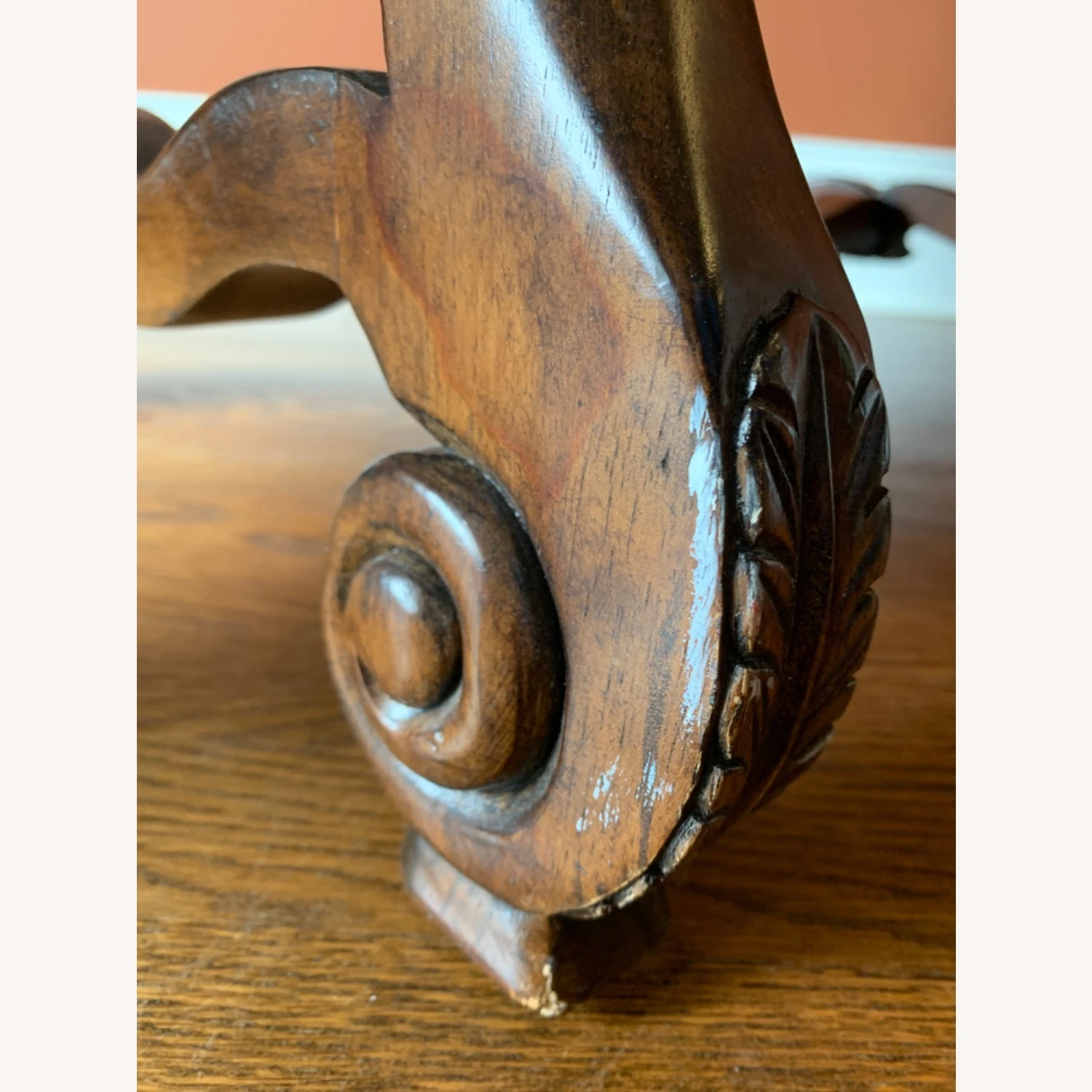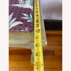 Seller’s Notes: Excellent condition high backed solid wood upholstered bench. Makes a comfortable addition to dining or living room. Some slight fabric fading on the back due to its sitting in front of a window.