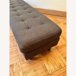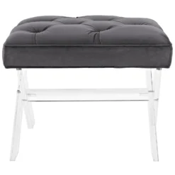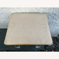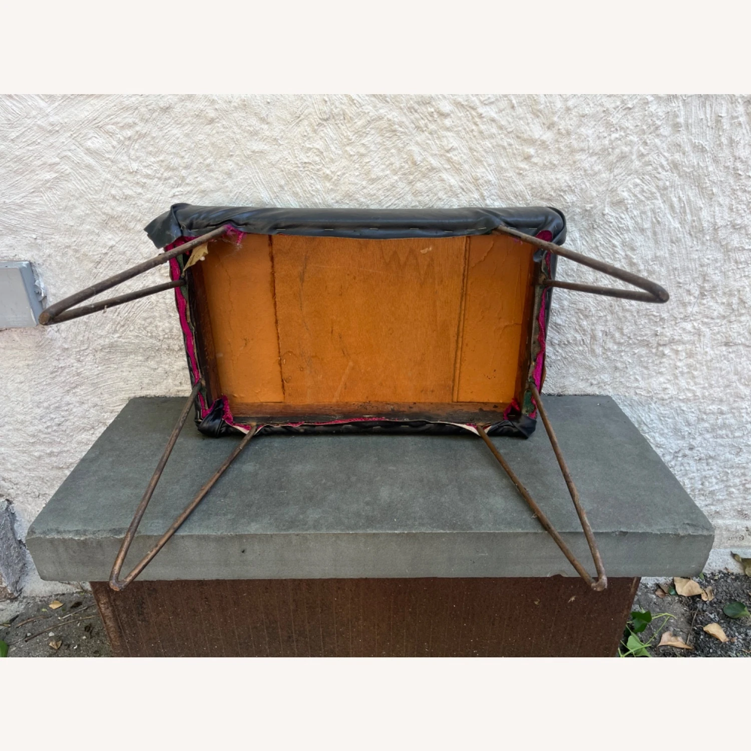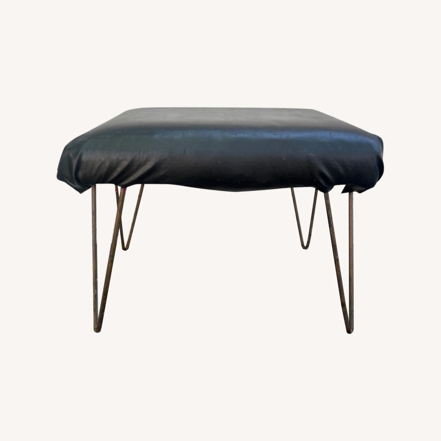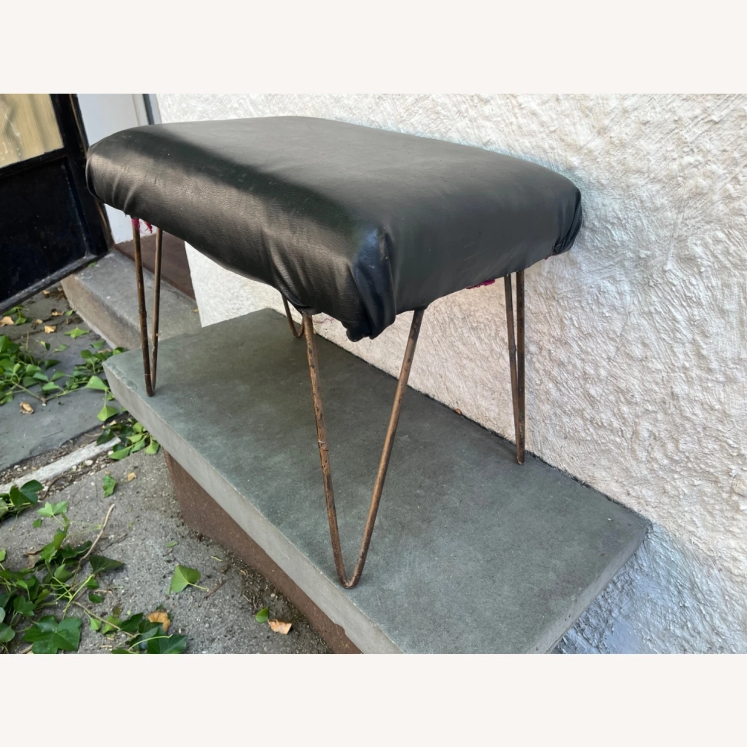 Seller’s Notes: Vintage stool with hairpin legs. Upholstery over wood frame with metal legs.
