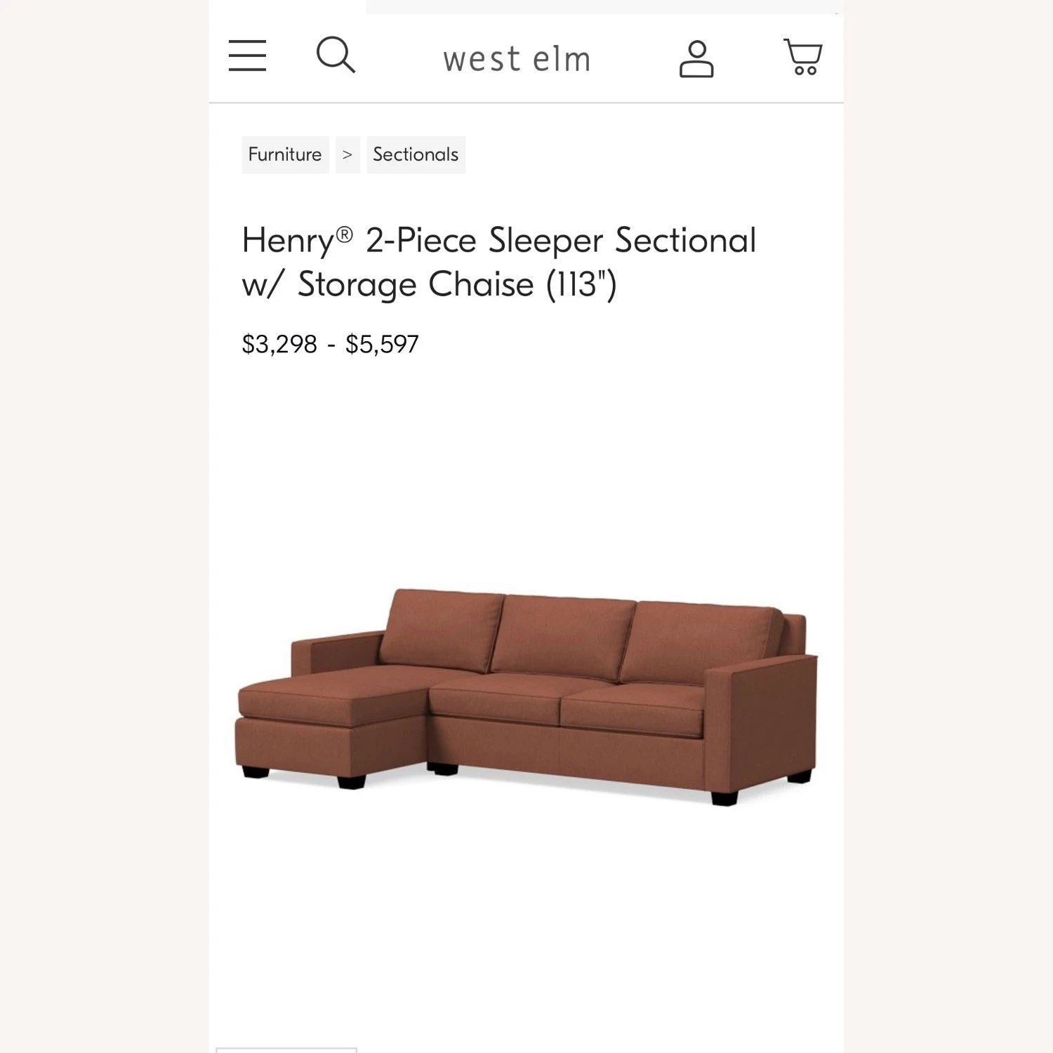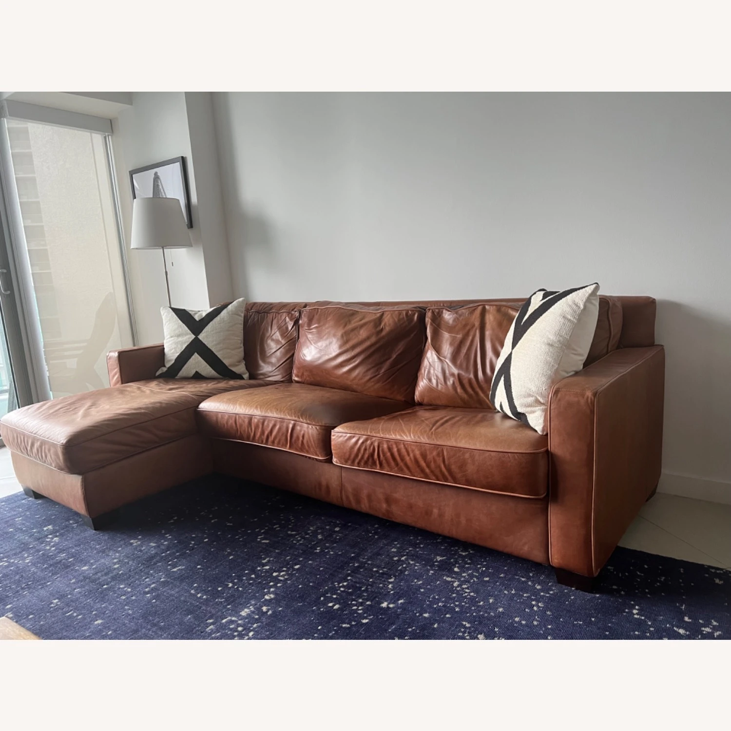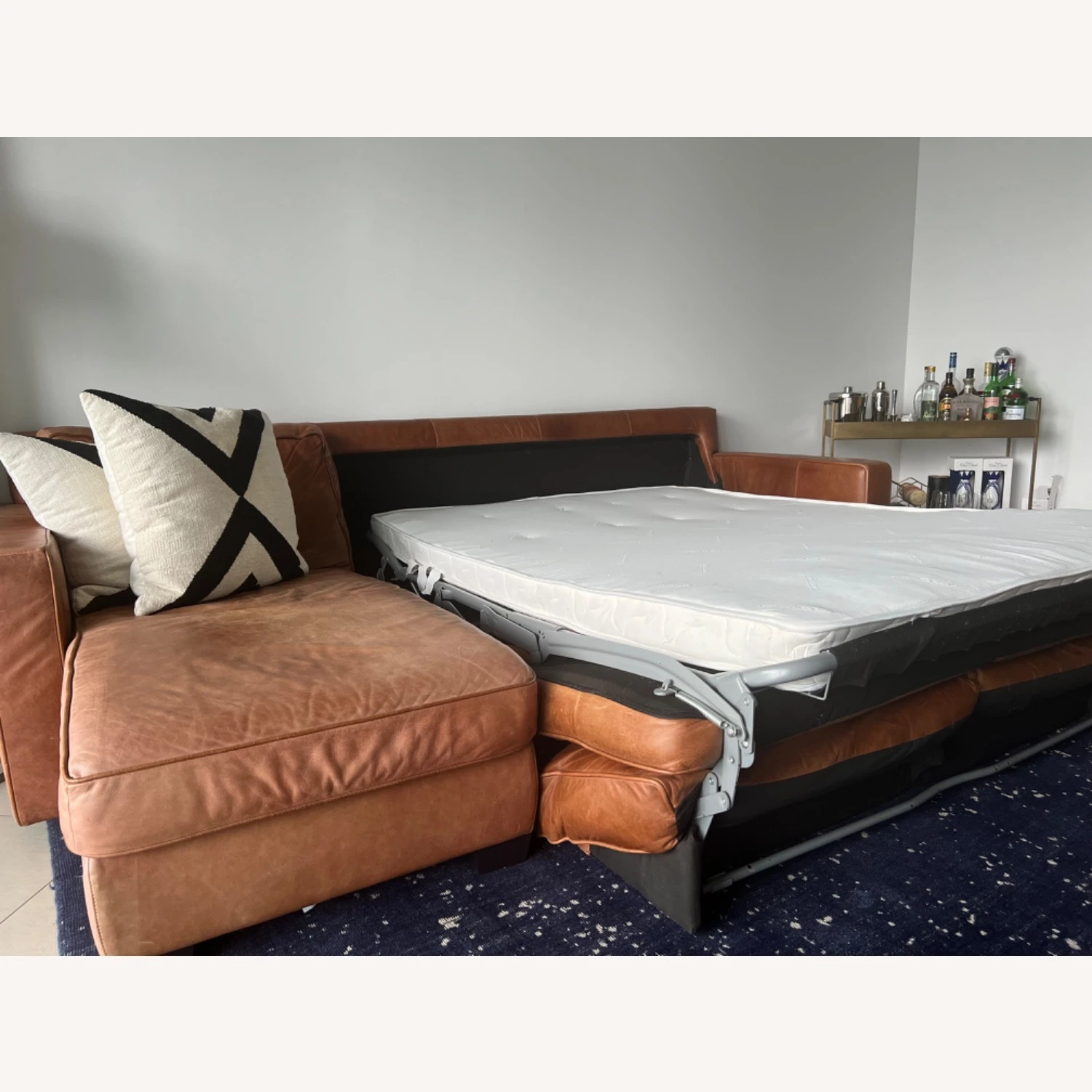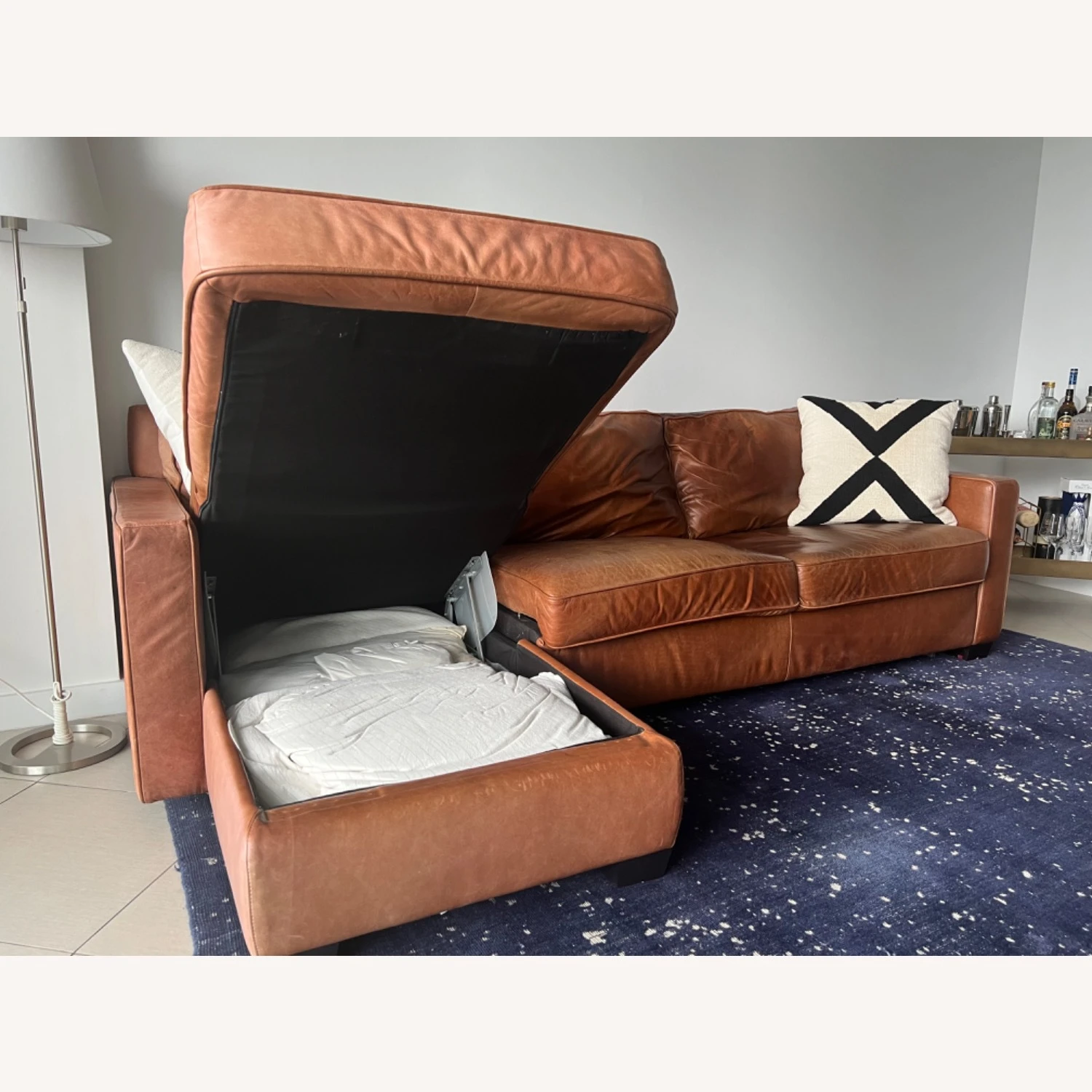 Seller’s Notes: Discontinued Leather West Elm Henry Set 5: Left Arm Chaise + Storage Right Arm Sofa Sleeper, Leather, Tobacco